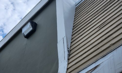 The project involved heavily scrapping/sanding of the wood clapboards and fascia on 2/3’s of the front and
