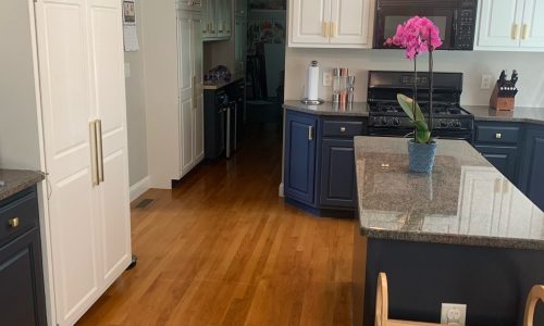 For cabinetry projects, we remove hardware and cabinet doors. Your cabinets can then be painted in place, or removed and painted off-site. Our painters then re-install the door hardware and re-hang the doors once we have completed painting the cabinets.