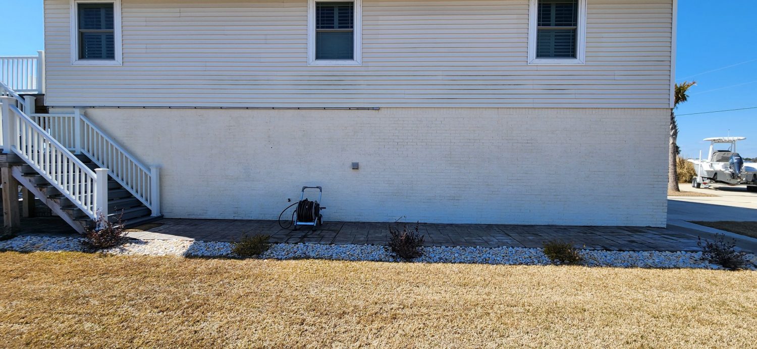 CertaPro Painters® of New Bern-Jacksonville NC completed a full exterior repaint of this Sneads Ferry, NC home’s lower-level brick foundation and garage surround. The original brick had a dated, uneven appearance, and the homeowner wanted a brighter, more cohesive look to complement the siding and overall exterior.