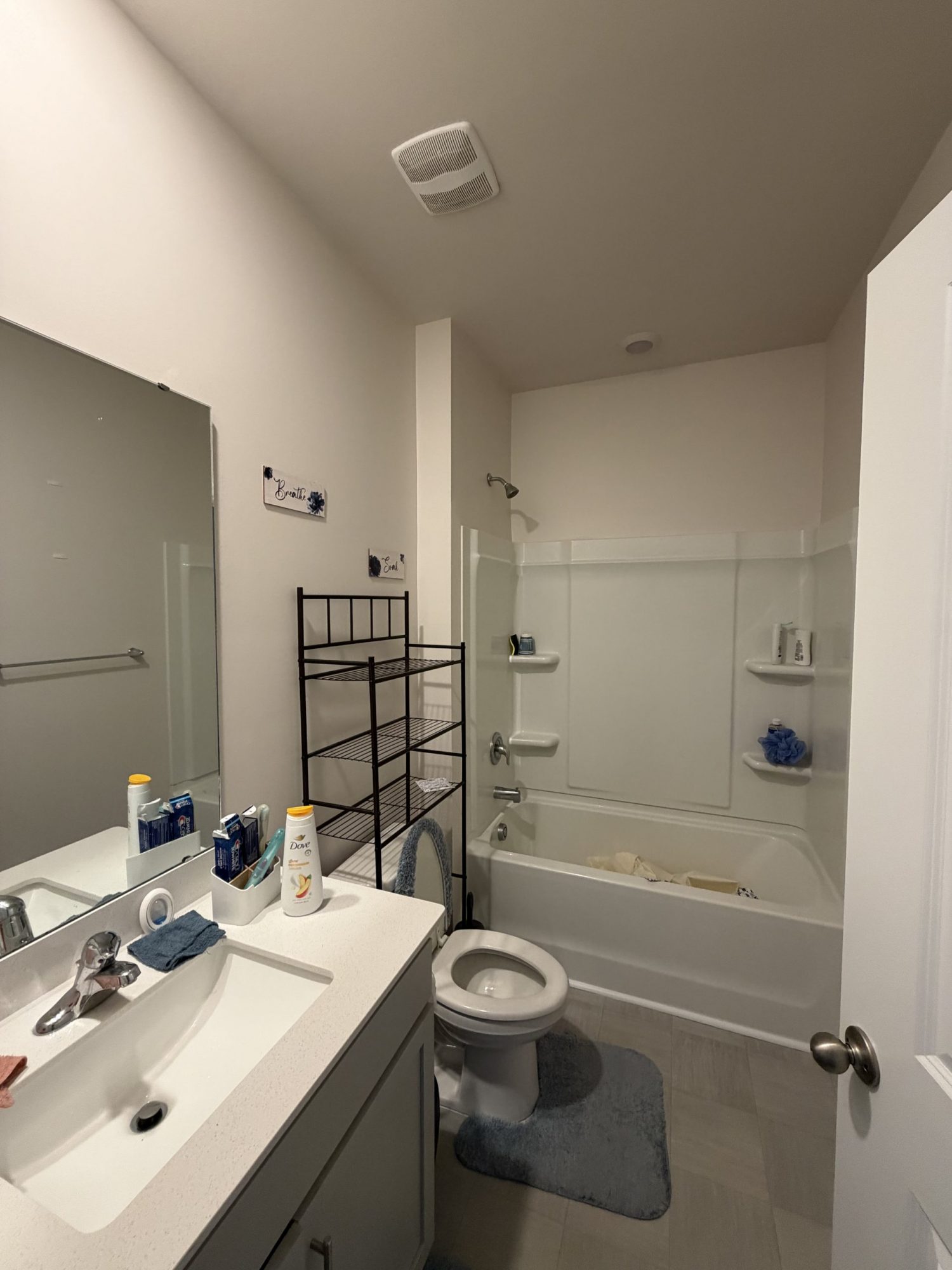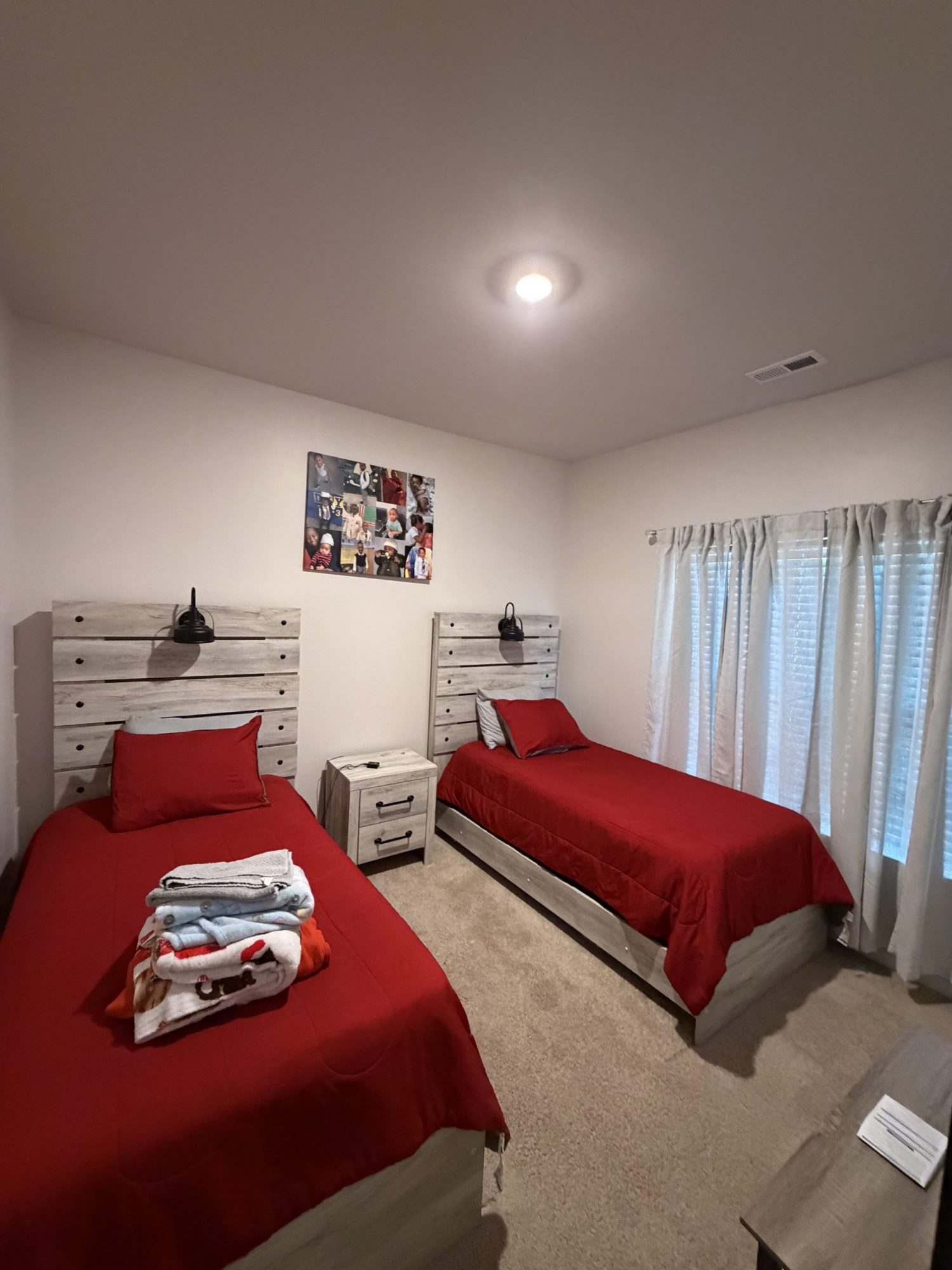 Our team carefully prepped all surfaces, addressed minor wall imperfections, and applied a premium interior paint to ensure even coverage and long-lasting durability. The new neutral wall color complements the dark flooring and blue furnishings while making the room feel larger, brighter, and more inviting.