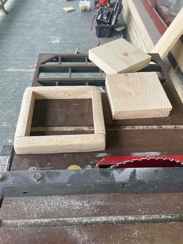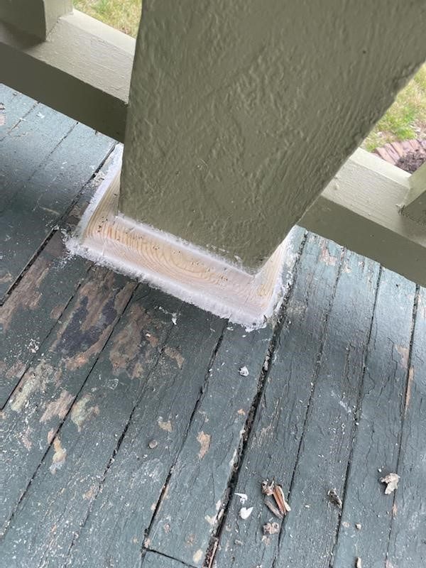 The base of the porch banisters needed to have the wood fully replaced, we cut pieces to match.