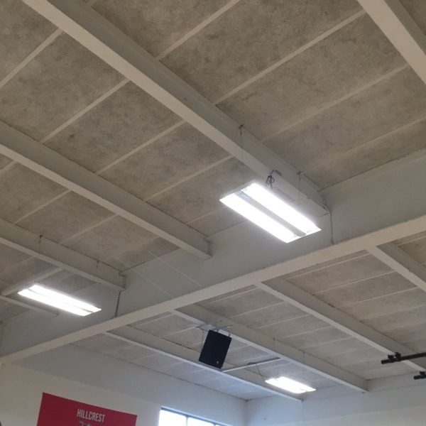 Some parts of the gym were painted using a scaffolding set up, others we used an electric lift.