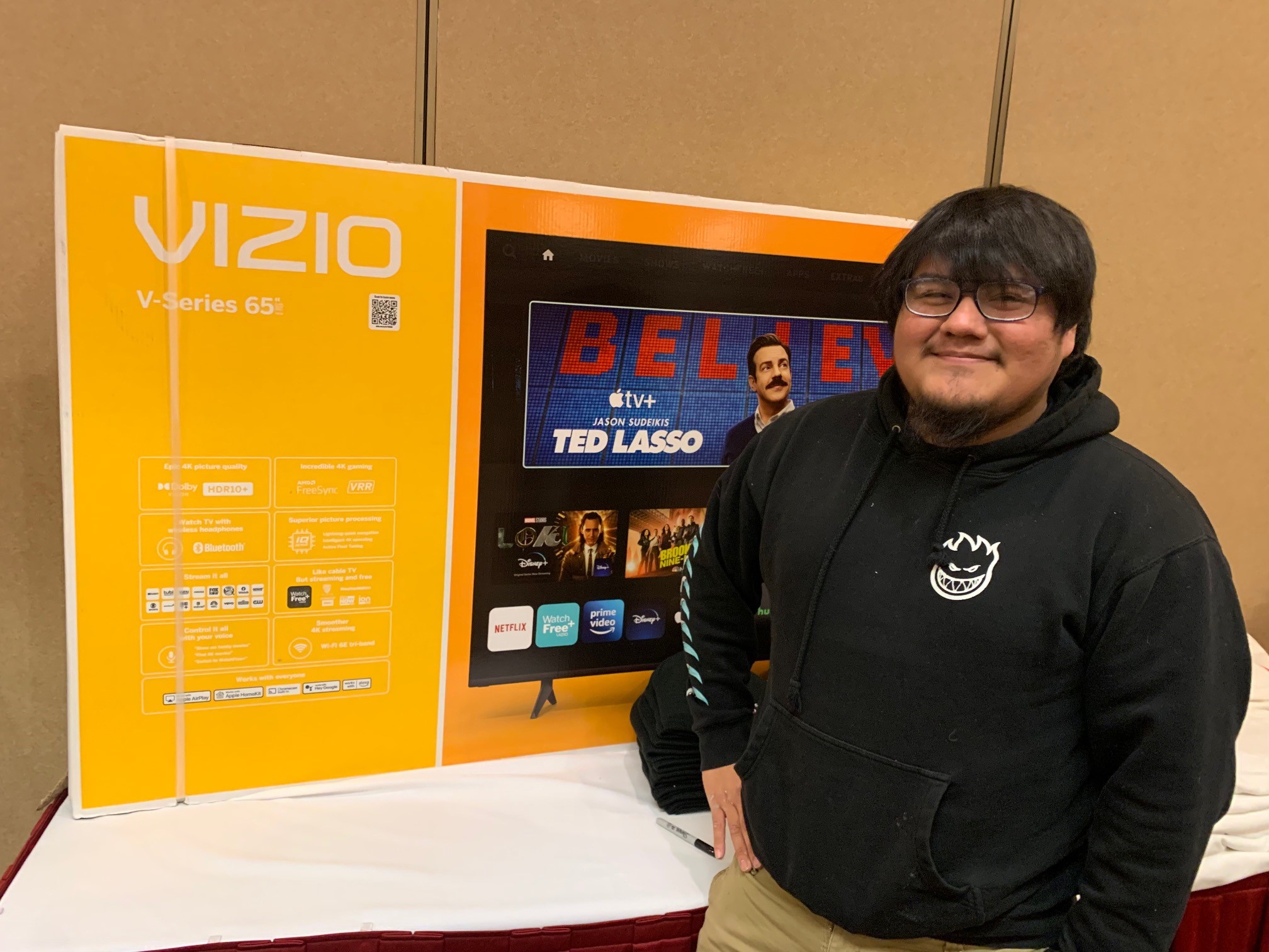 Everyone received gifts. There were even a few really cool door prizes. Ricardo, Christopher and Jeffrey cleaned house.