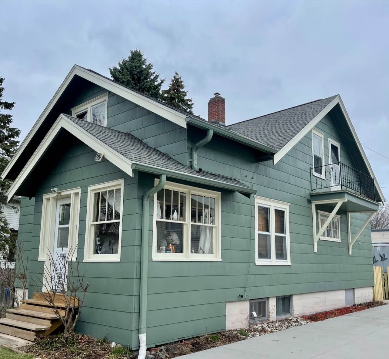 Scrape, hand-wash, spot prime and 2 coats of SW Latitude/Satin.Smooth Cedar Siding: Retreat SW6207 RetreatTrim, Windows & Doors: Polar Bear SW7564