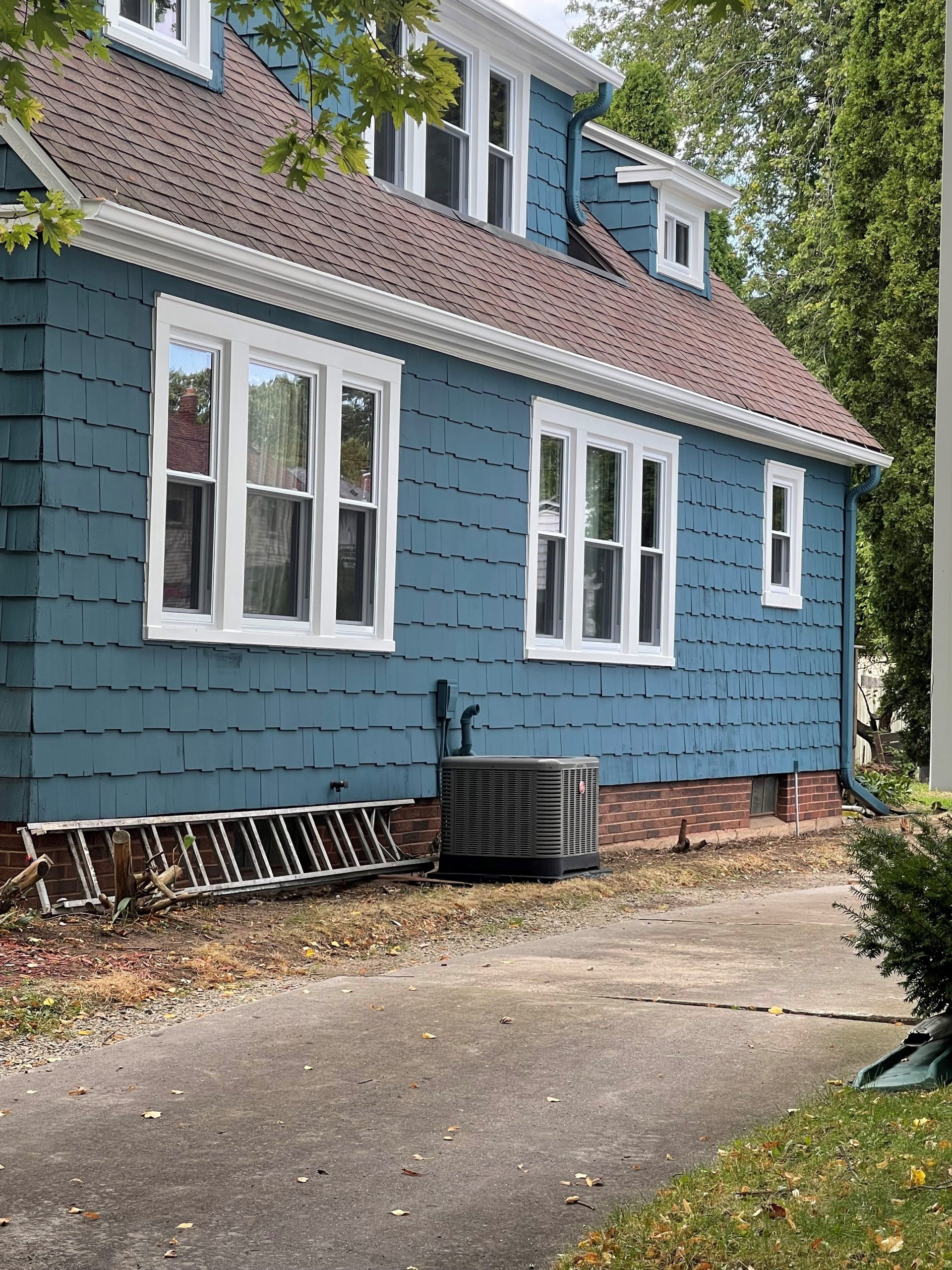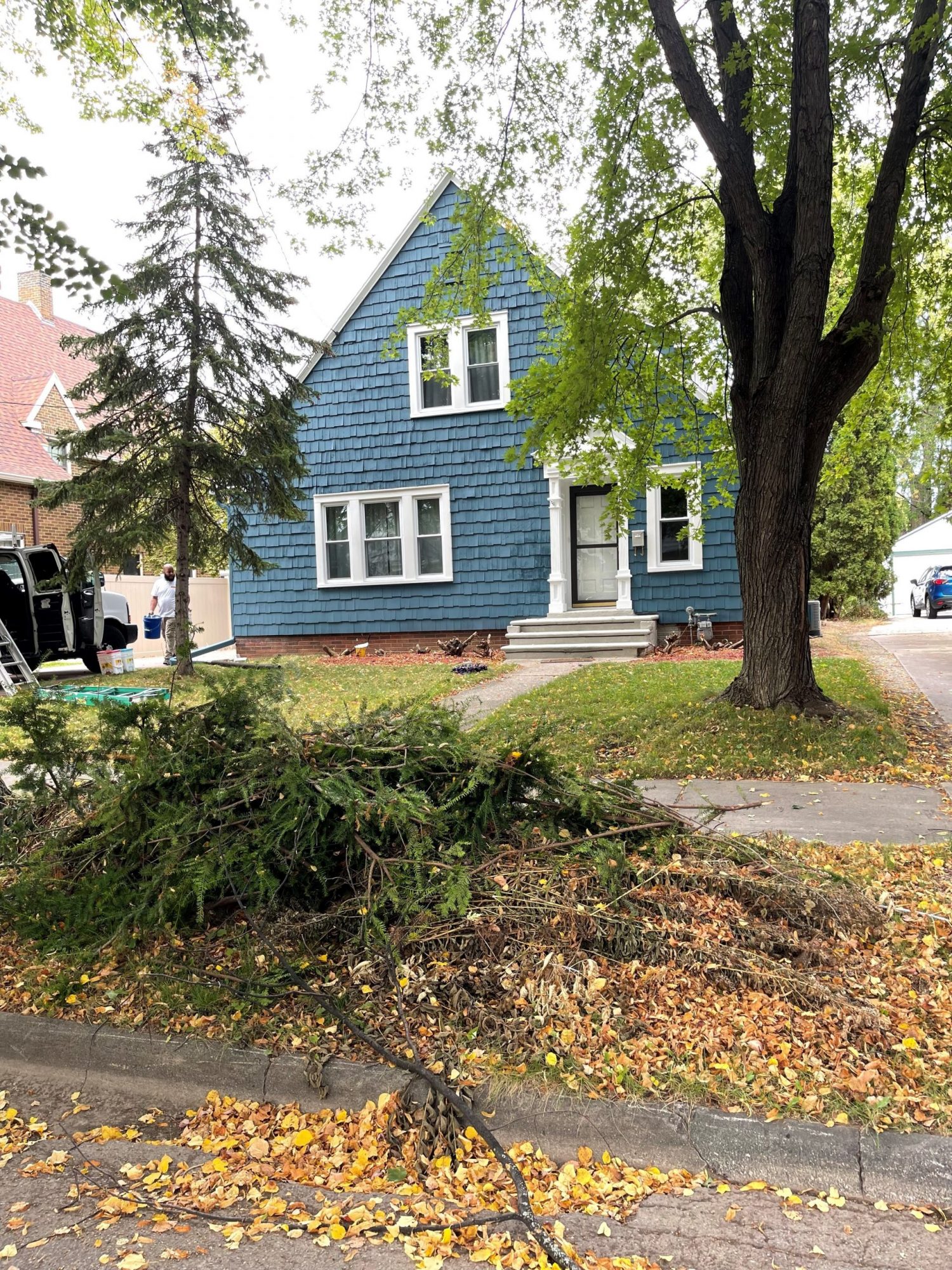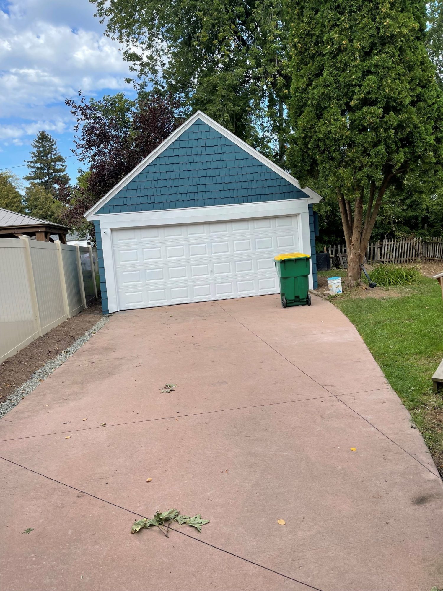 Scrape, hand-wash, spot-prime and 2 coats of SW WoodScapes Solid Stain