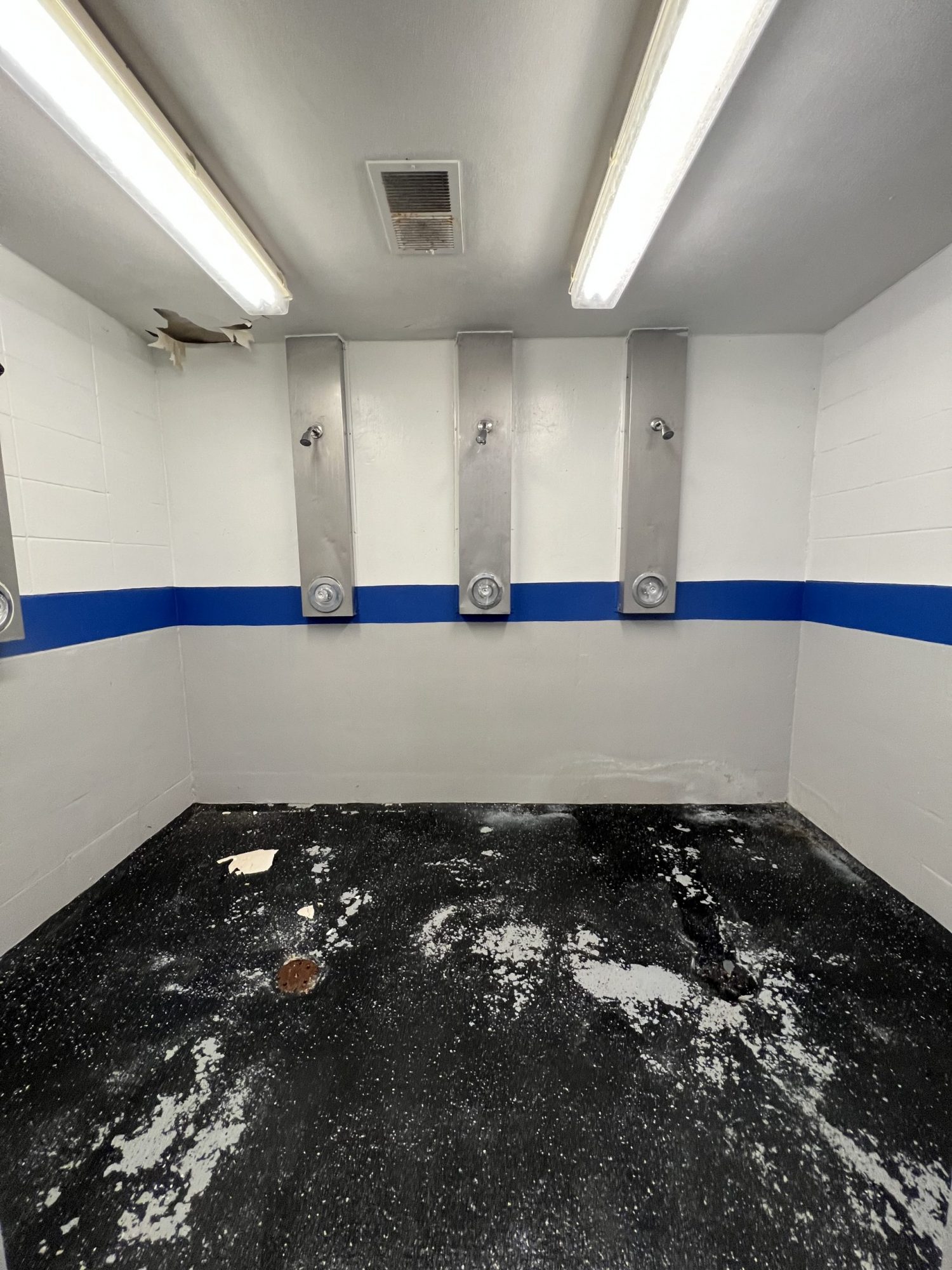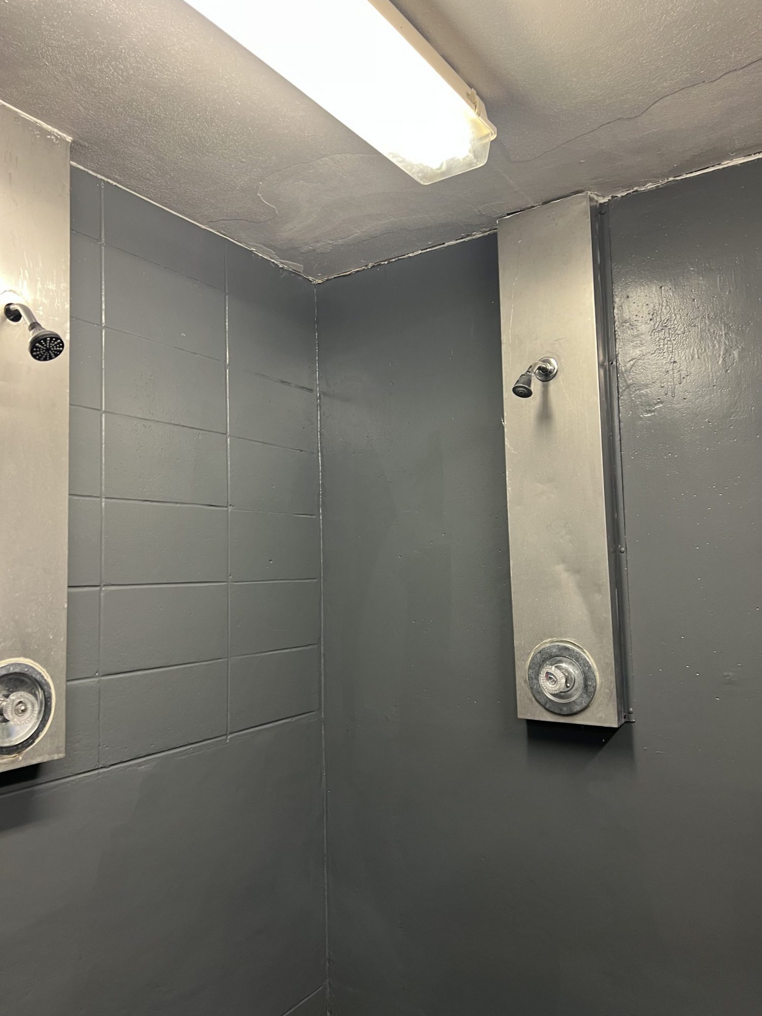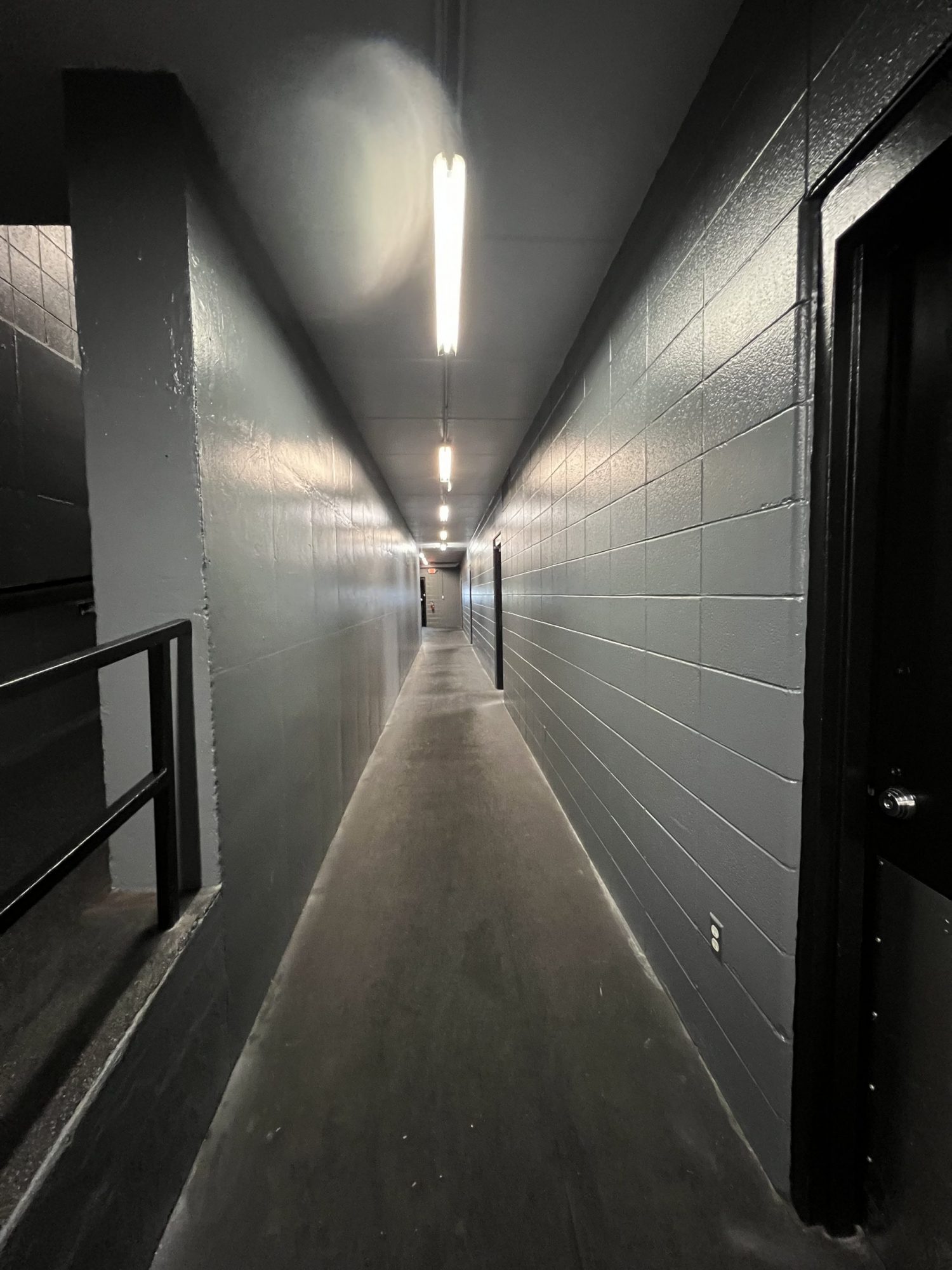 Ahead of the Bantam B Wisconsin State Hockey Tournament, we refreshed key areas of the De Pere Ice Arena, including doors and frames, hallways, locker rooms, and restrooms. After plaster repair, sanding for adhesion, and rust-inhibitive priming, we applied two finish coats using Sherwin-Williams SW7004 Snowbound on the ceilings, SW7075 Web Gray on the walls, and SW6285 Tricorn Black on the doors and frames for a clean, durable finish.