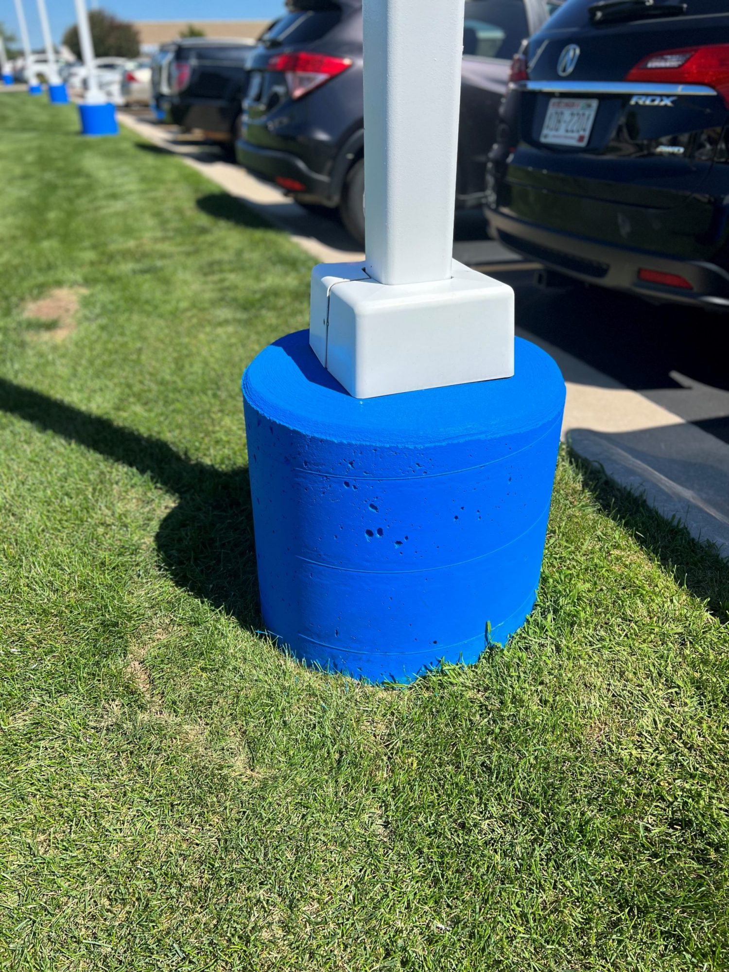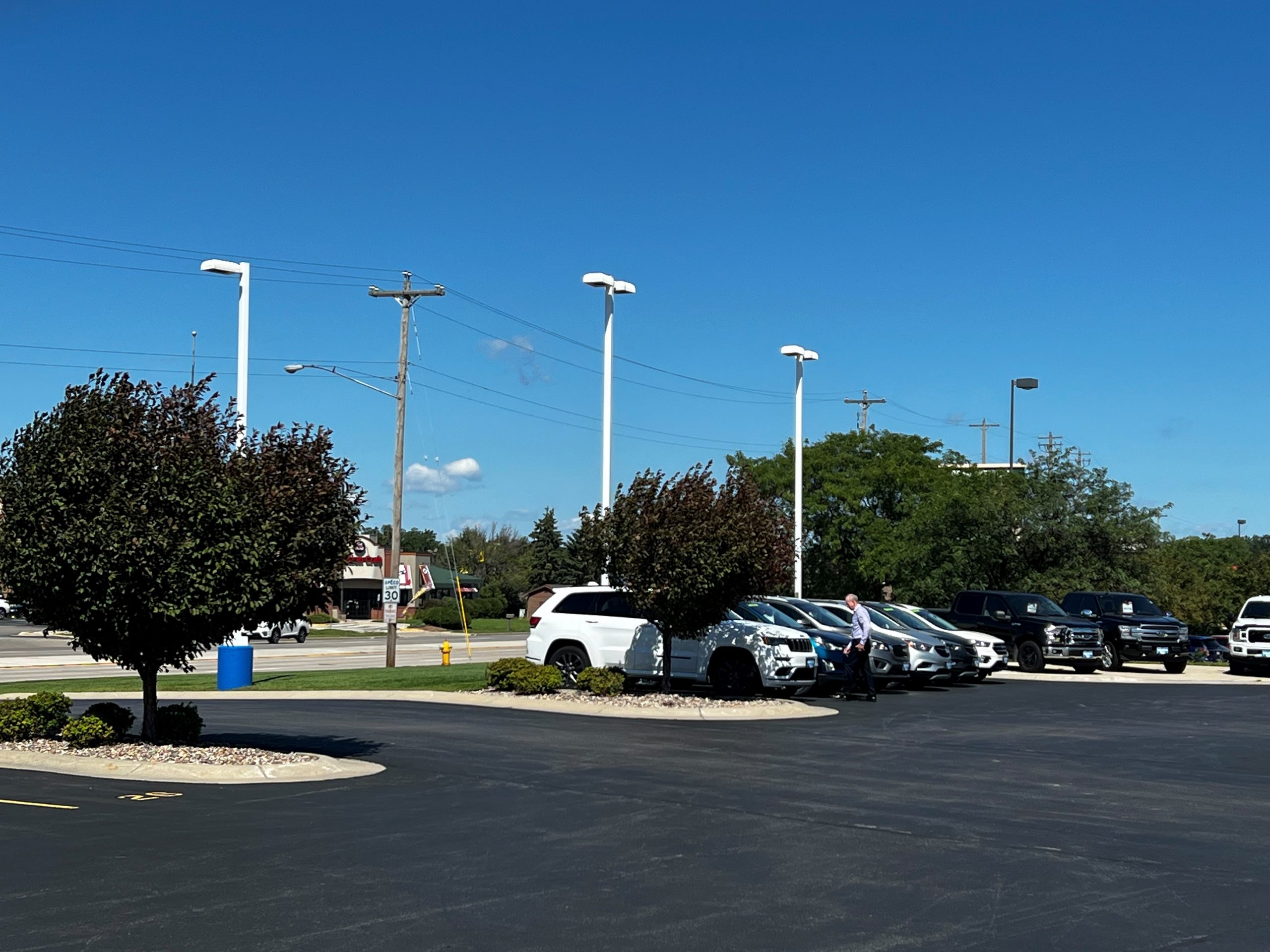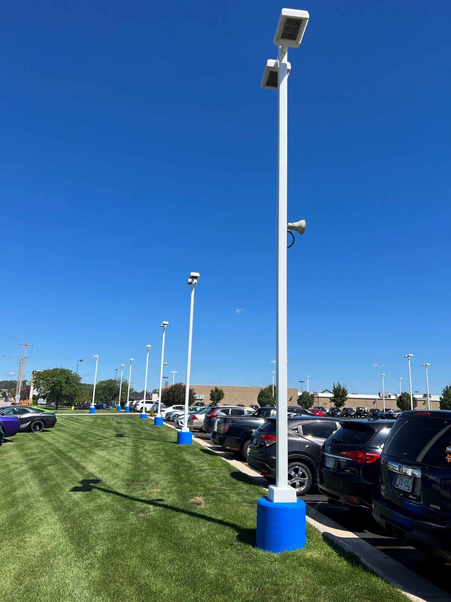 Really like the new look of the light poles over at Van’s Honda (Green Bay, WI.). The light poles were sanded to remove surface rust, cleaned, masked, full primed with an SW Kem Kromik Rust Inhibitor, 2 coats of SW Industrial Urethane Alkyd Enamel/Semi-Gloss.