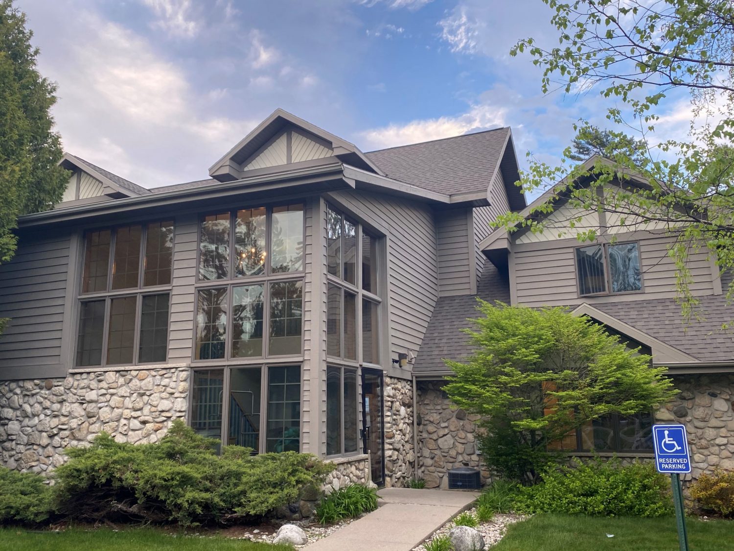 This home in west green bay has a common color palate for the area and blends in well with its natural surroundings.
