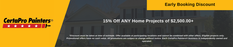 *Discount must be taken at time of estimate. Offer available at participating locations and cannot be combined with other offers. Eligible projects only. Promotional offers have no cash value. All promotions are subject to change without notice. Each CertaPro Painters® business is independently owned and operated. * Expires: March 31st, 2026*