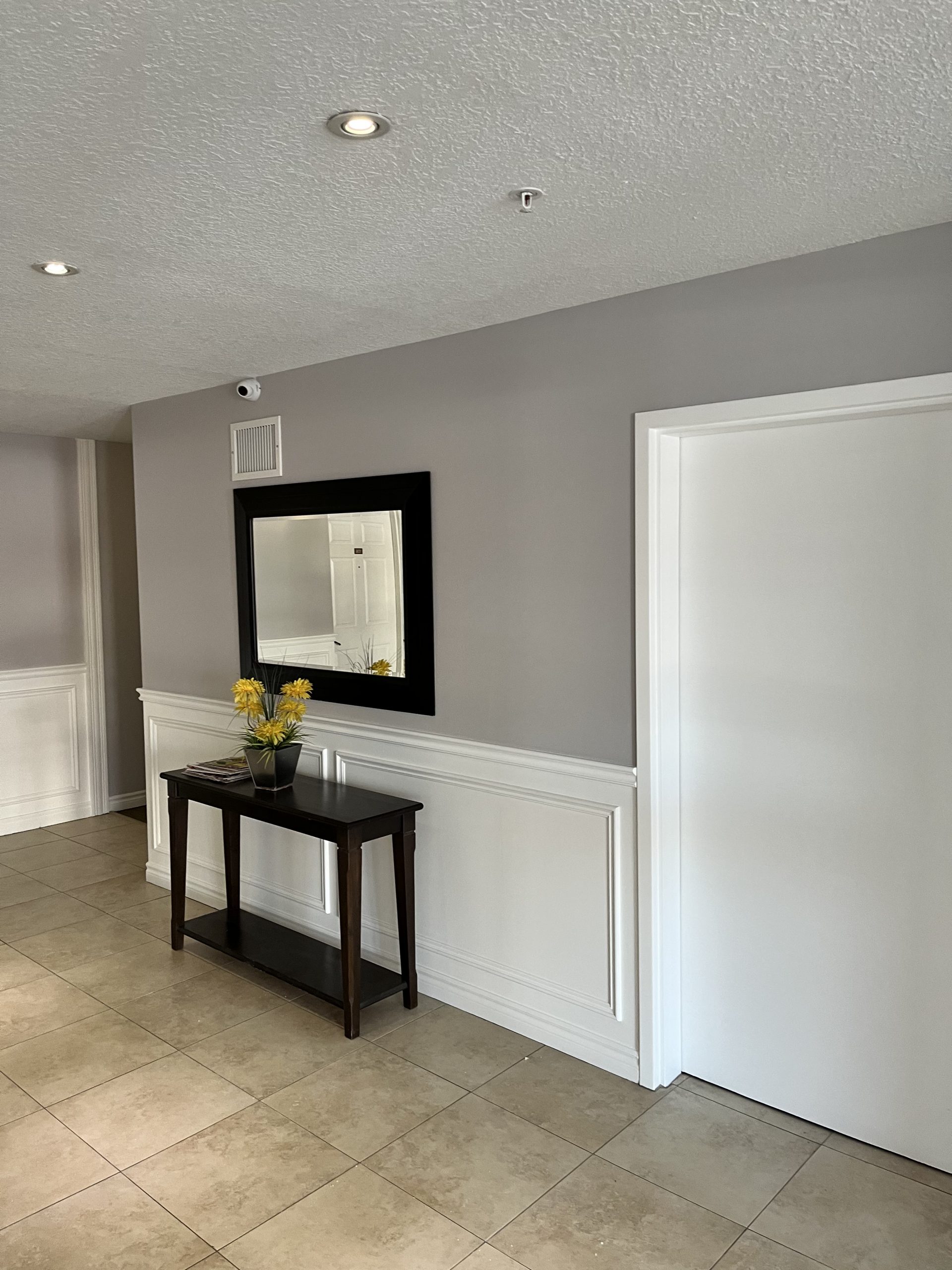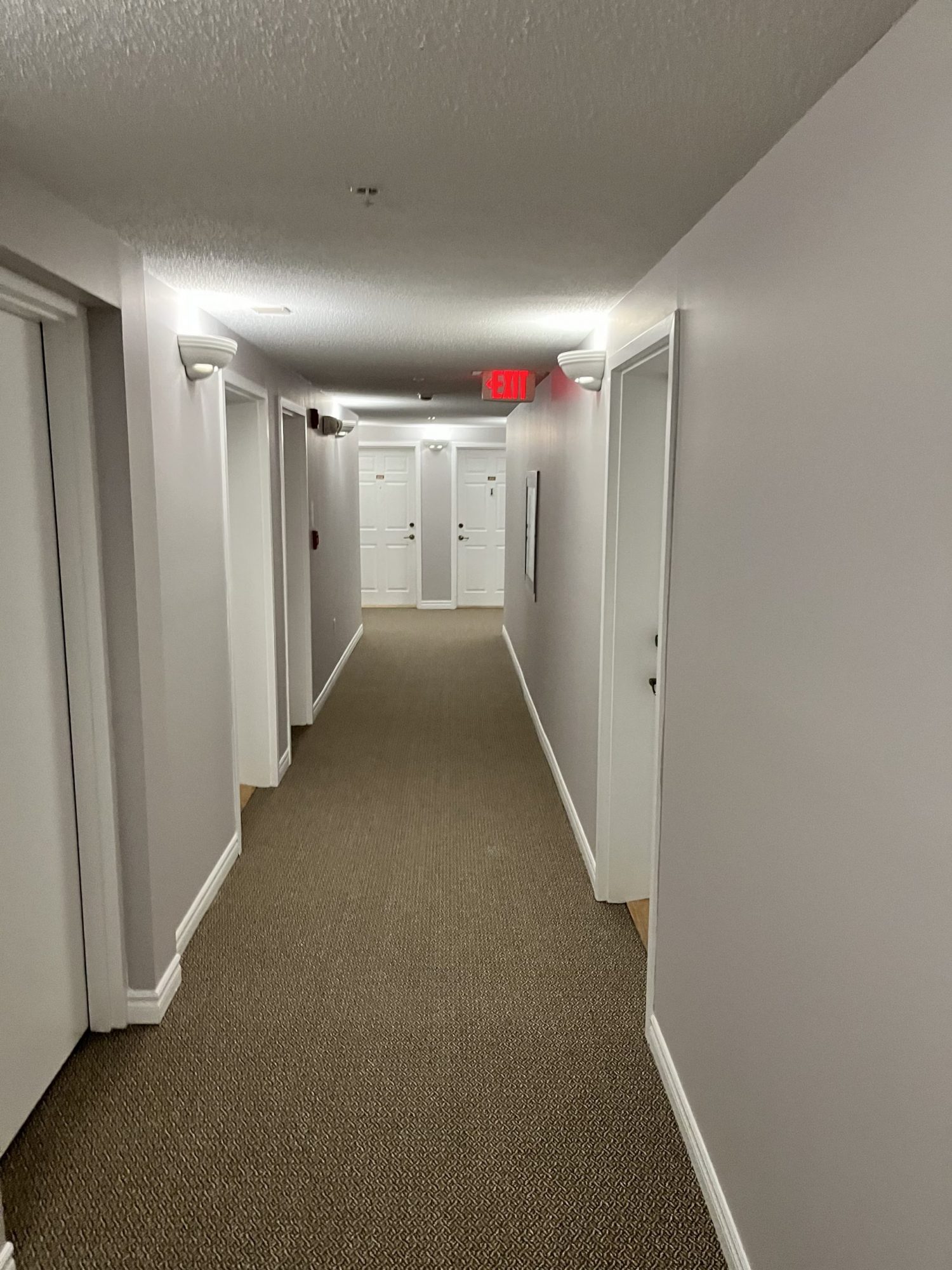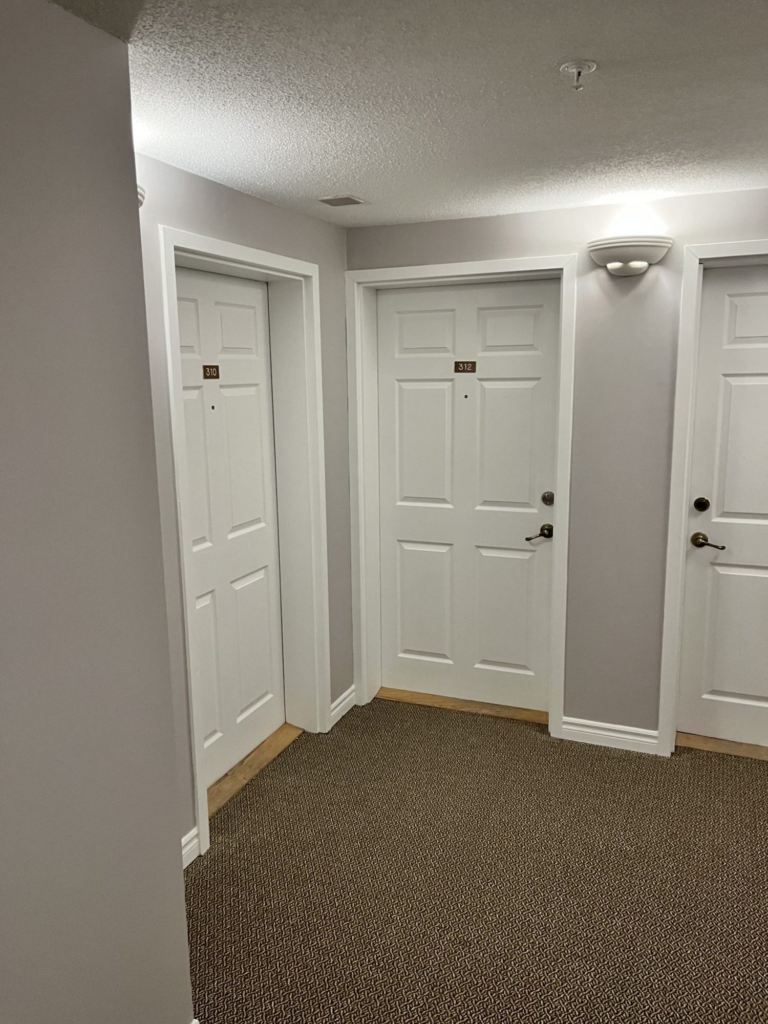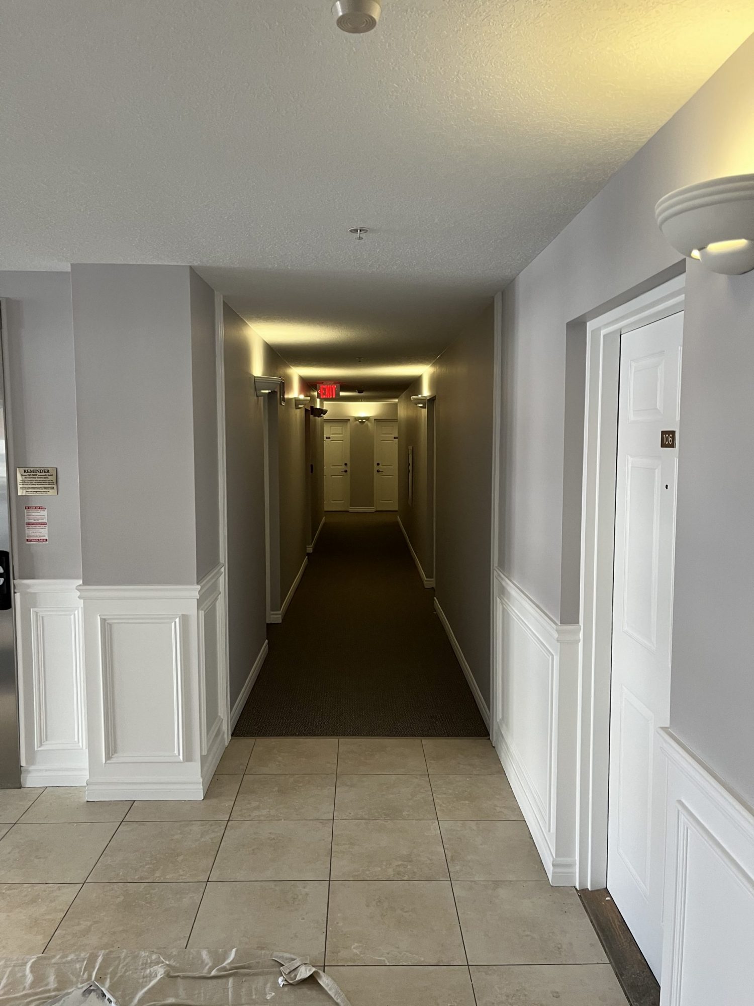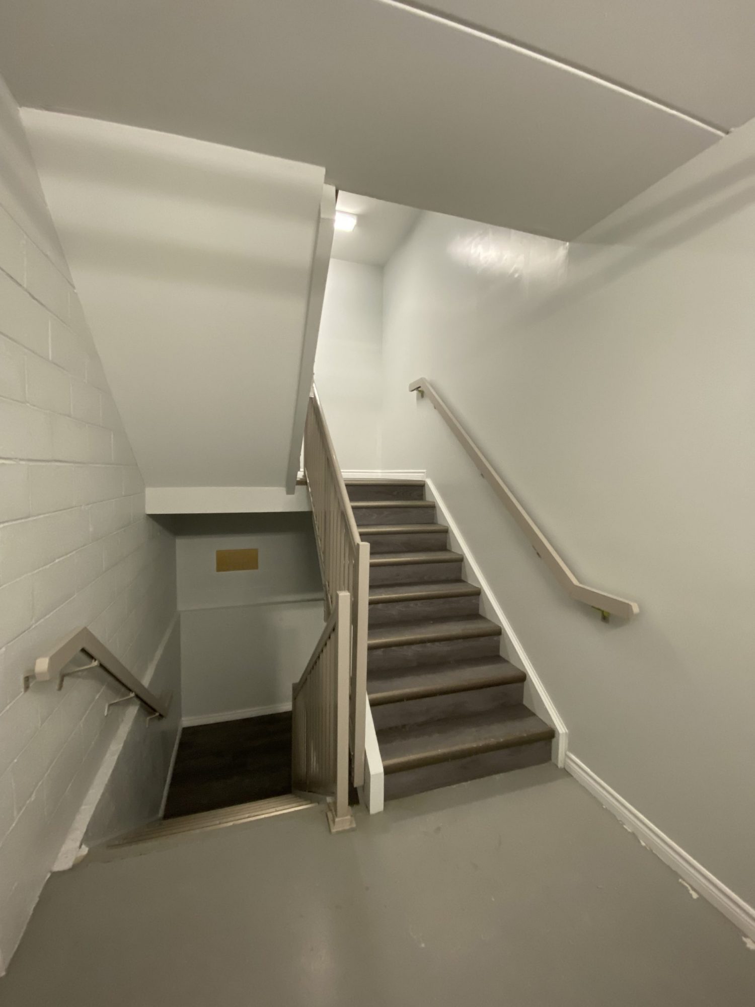 Products used included Sherwin-Williams Promar Ceiling Paint, Cloverdale MultiMaster for trim and doors, Dulux Diamond Semi-Gloss for stairwells and Dulux Diamond Low-Sheen Eggshell for hallway and common area walls.