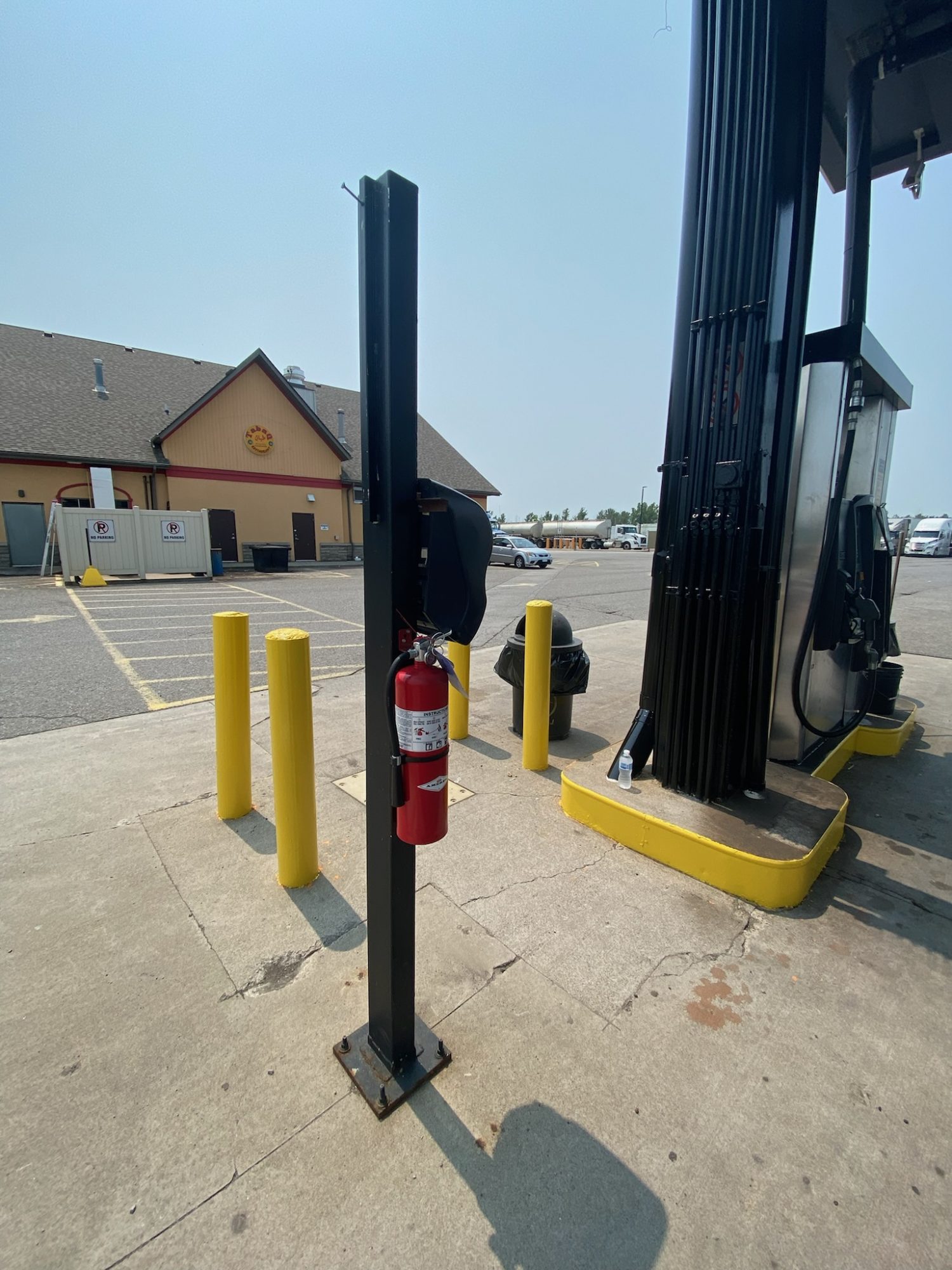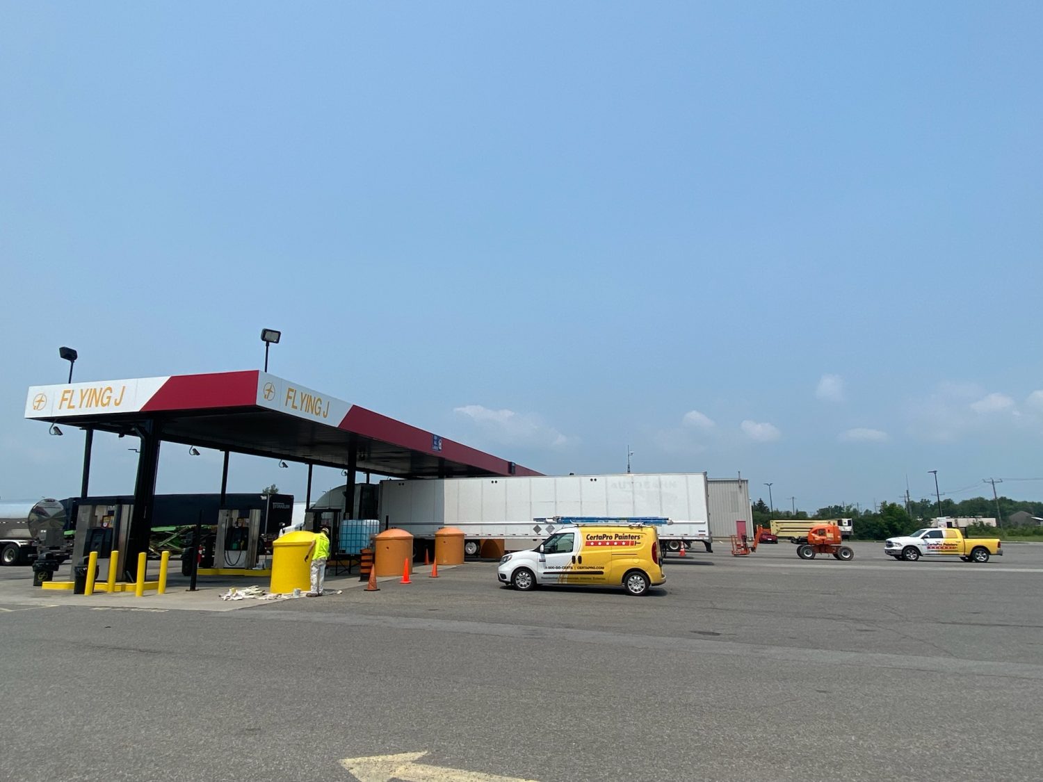 Truck Stop and Gas Station project for Flying J in Fort Erie Ontario. Bollards, canopy structure, light standards and pylon signs repainted.
