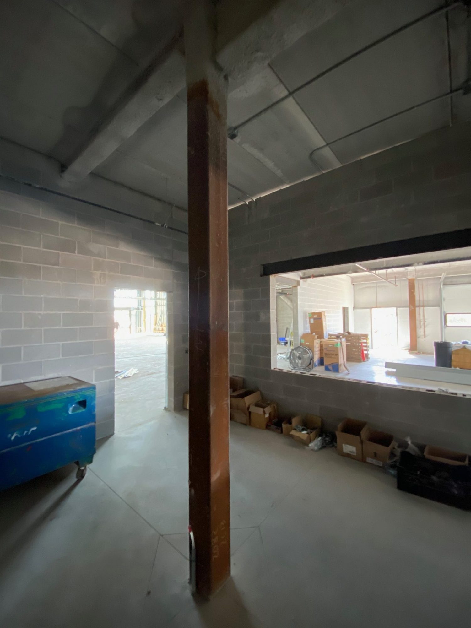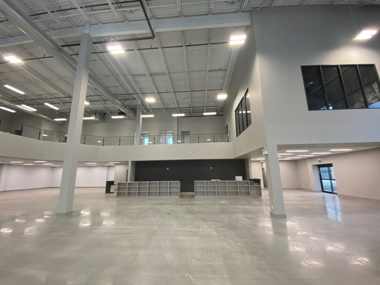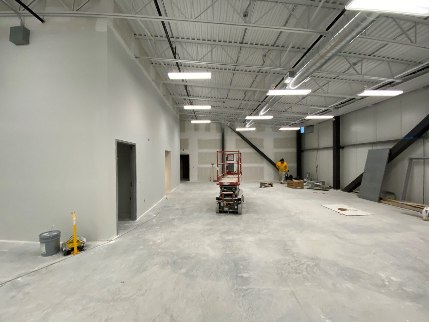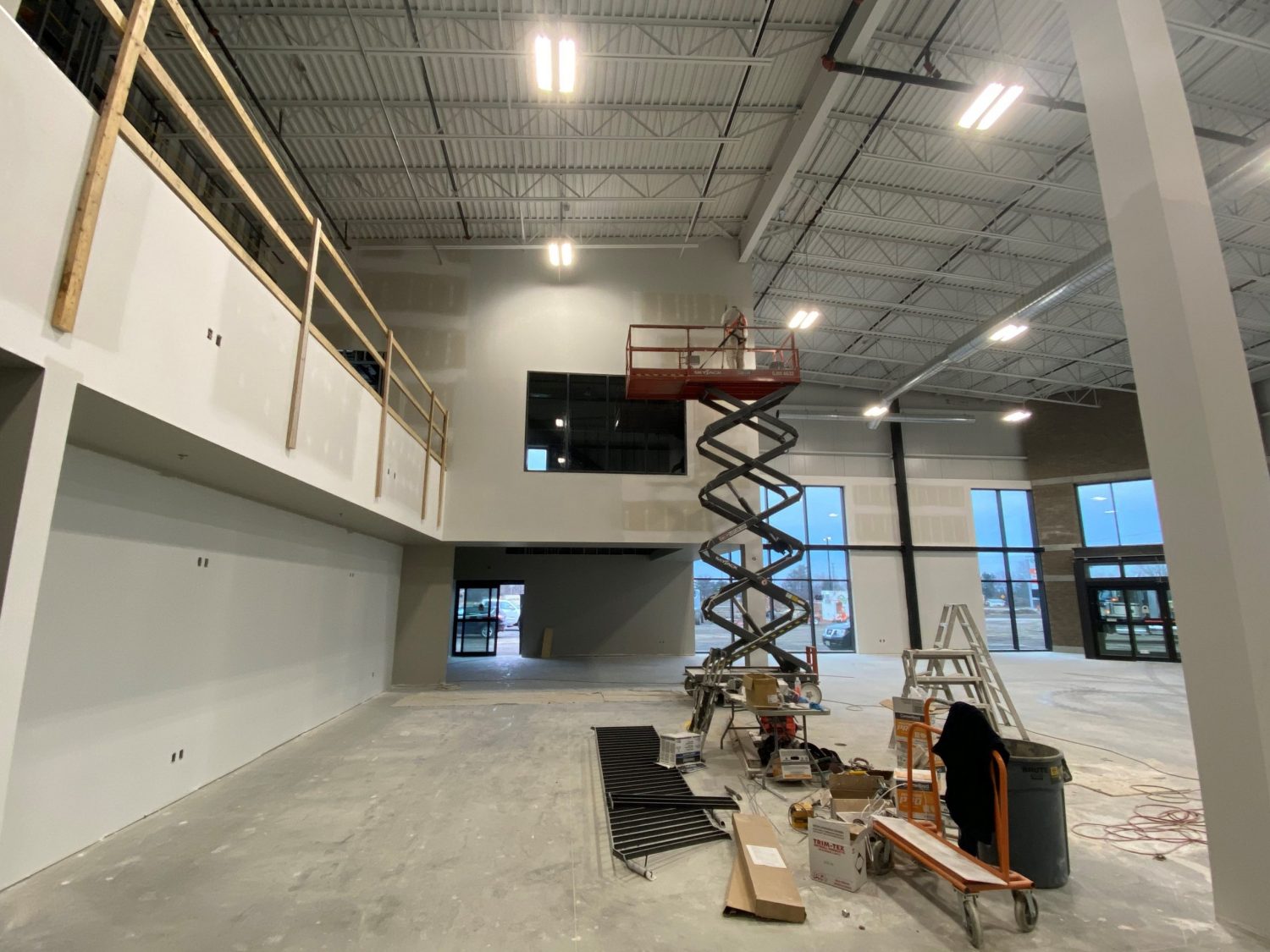 Here is a view of the sales floor after the application of drywall on the steel deck.