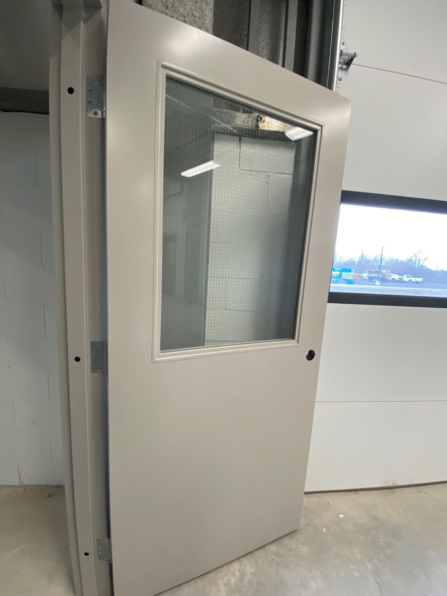 Doors were marked, cleaned, primed, then finished with Sherwin-Williams Pro Industrial Acrylic.