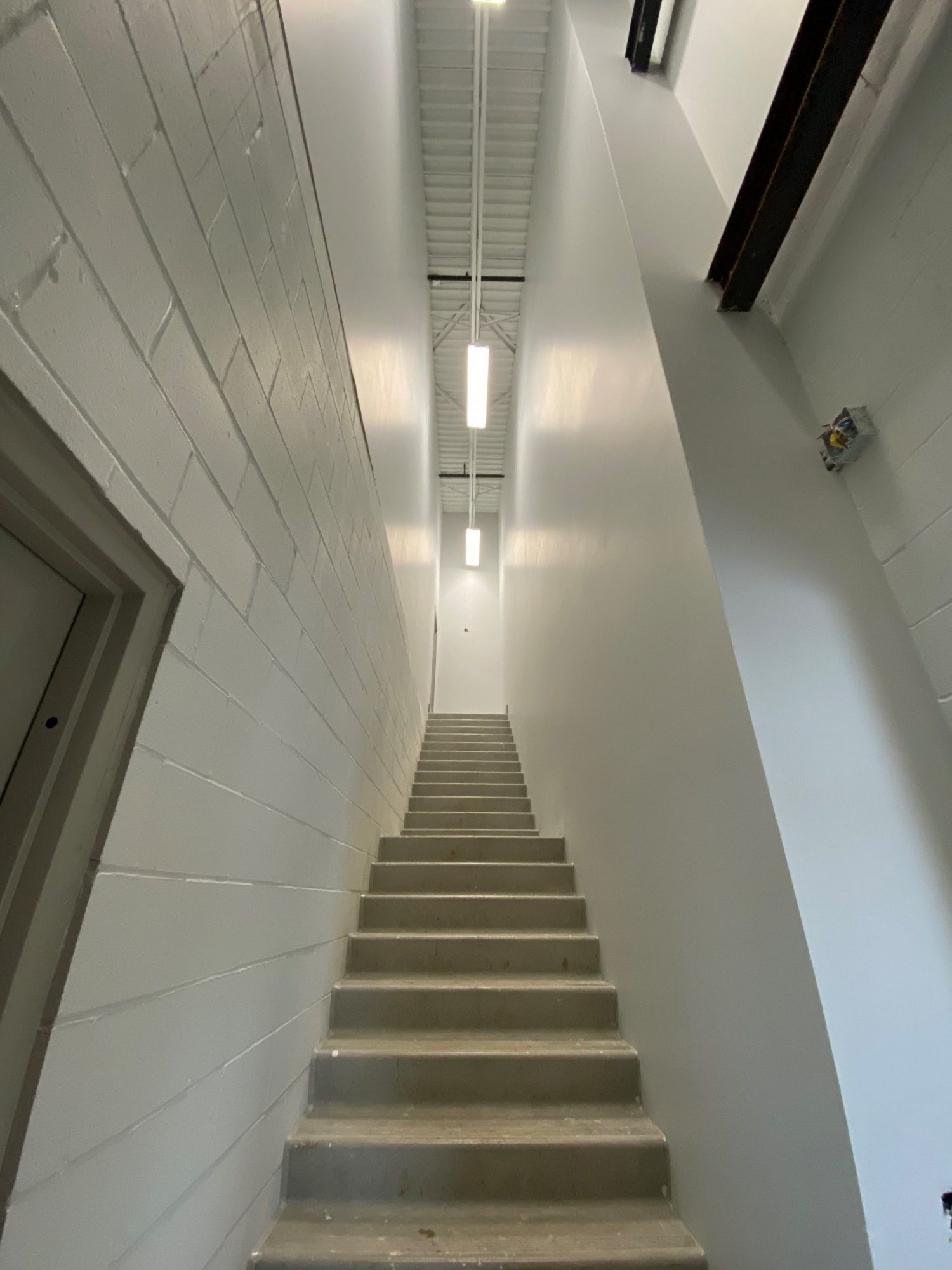 The project involved extensive prep work, block filling, poured concrete filling and patching, priming of drywall, fireproofing of steel columns, priming and finishing of block and drywall surfaces with epoxy finishes, industrial acrylics and architectural coatings. We cleaned, primed and spray finished all interior and exterior metal doors and MDF baseboards. We also sprayed dryfall on corrugated metal deck/ceilings. Then we applied masonry coatings to the underground tunnel.