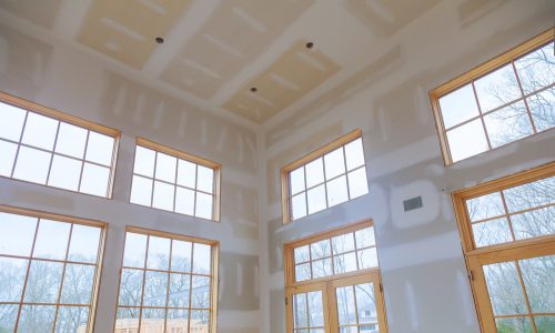 Here is a shot of what it is like to apply drywall. Finished while working on a lift.