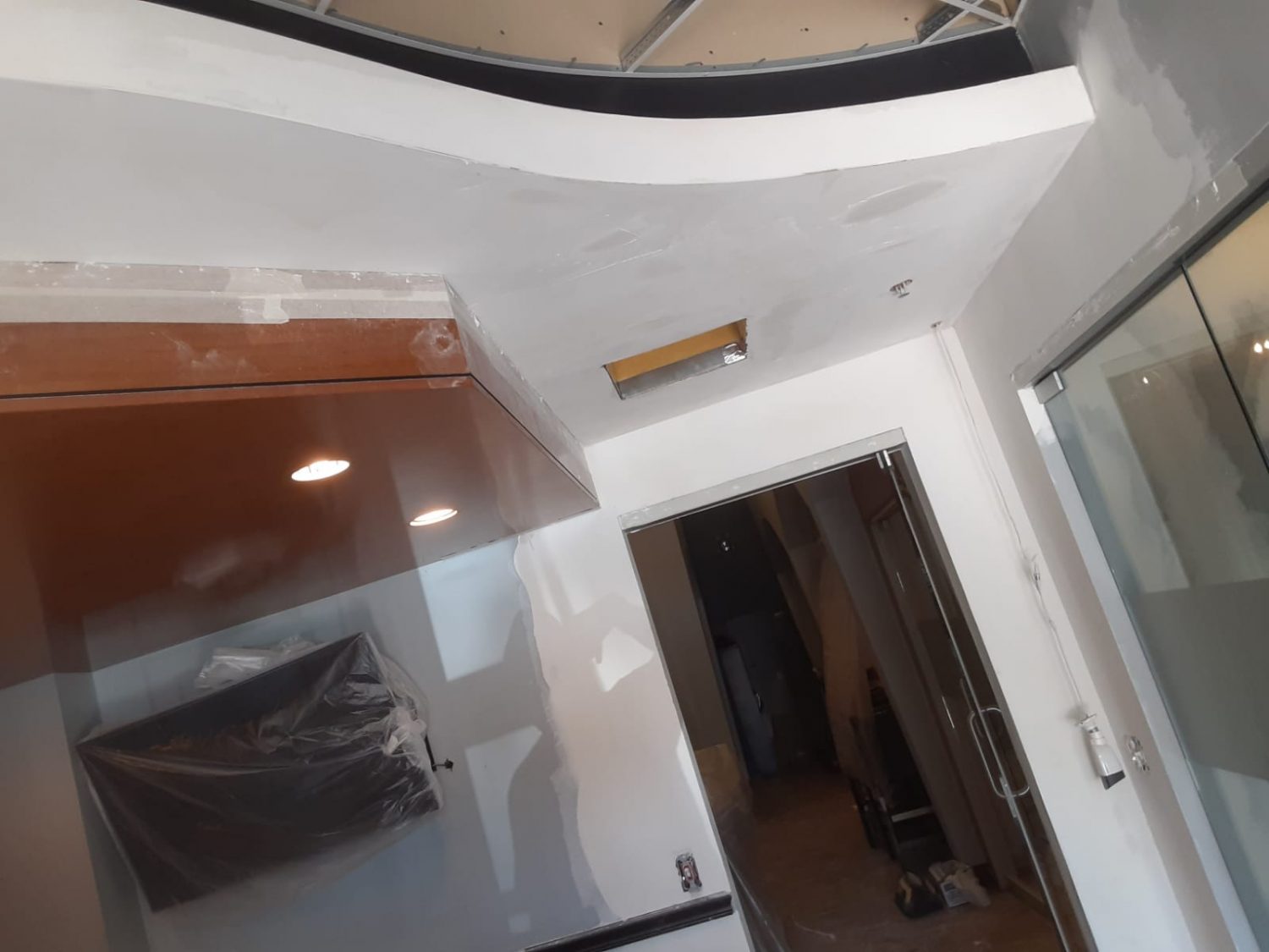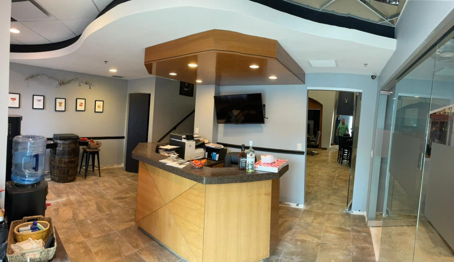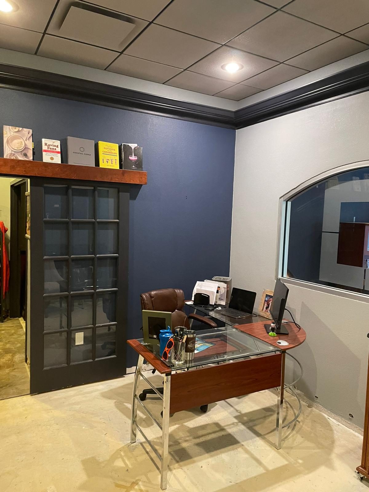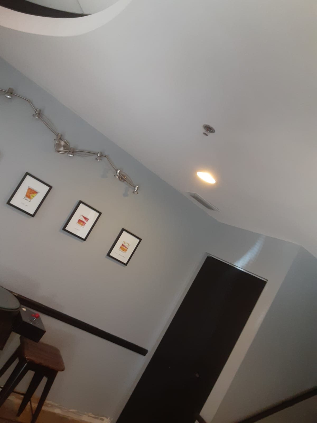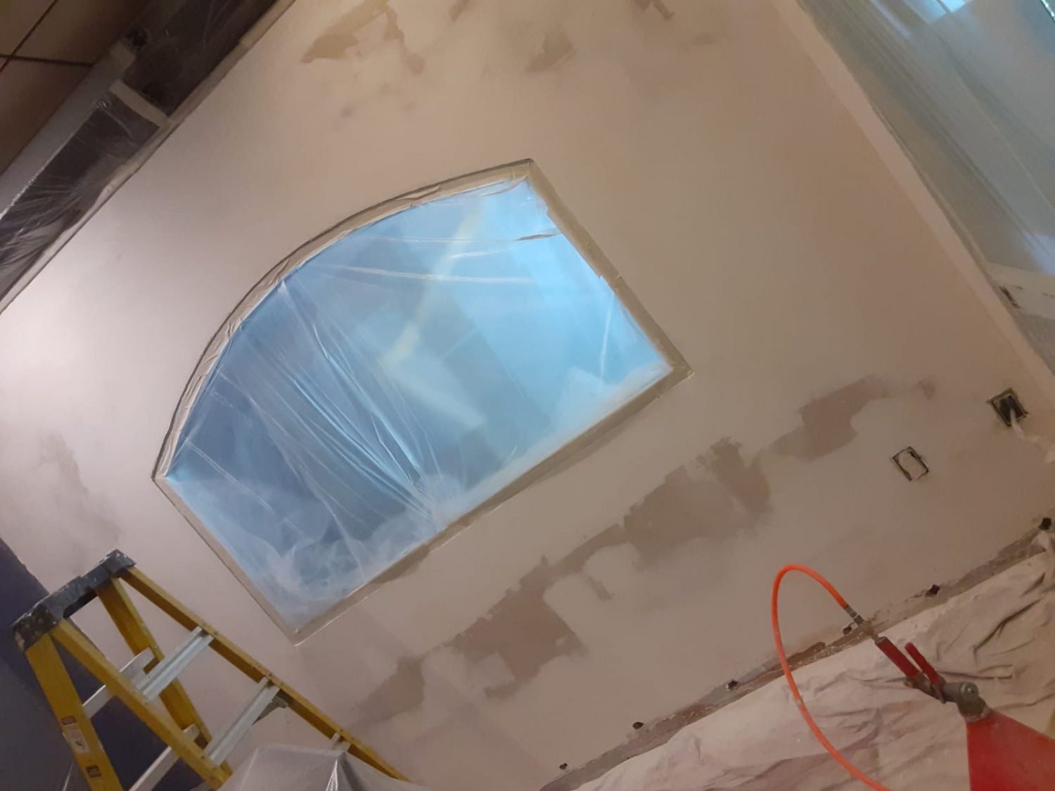 This was a commercial interior painting project inside a shopping center. It was 2 stories high and we had limited workspace. We repaired holes in the drywall on the walls and on the ceiling, re-textured the walls where needed, and repainted to match existing walls in the rooms.