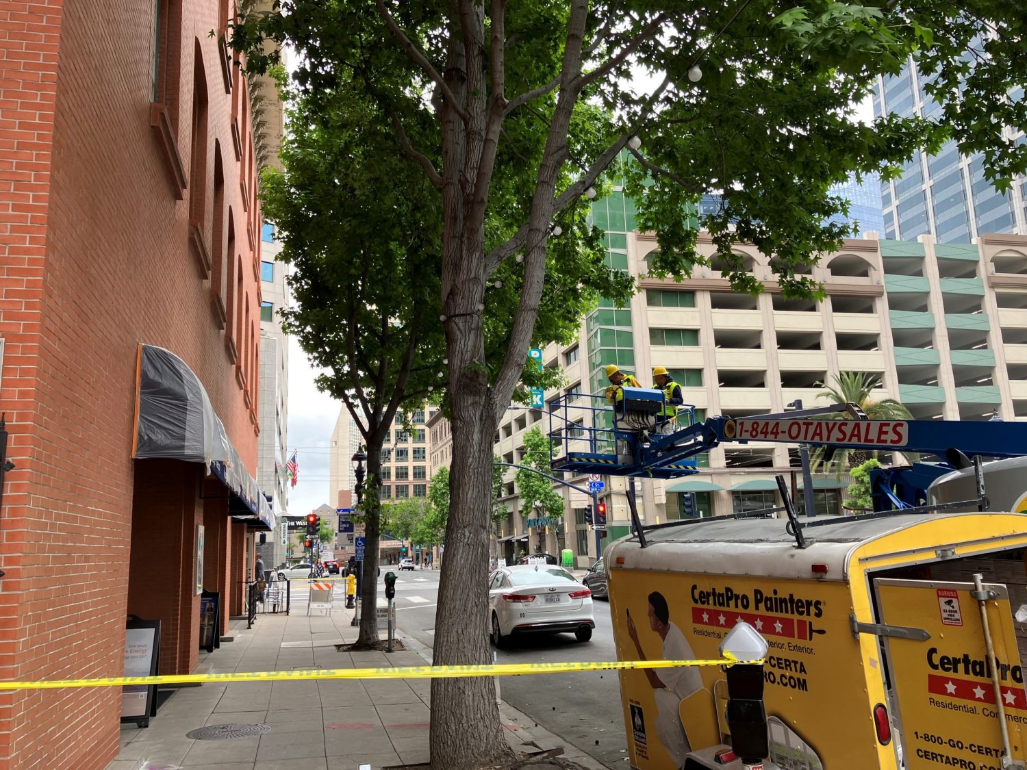This project took a lot of planning. We had to get permits from North County Traffic Control and San Diego Metropolitan Transit System. As part of that process, C Street was closed and power was shut down in order to work. We only had 2 hours a day to work with the power off since the trolley would start running at 5am. Naturally, if the power was on, our machinery and painters would be in danger due to the electrical lines adjacent with the upper floors. Having to work before 5am made this project unattractive to most other painters, but here at CertaPro, we specialize in projects that require versatility like this one.