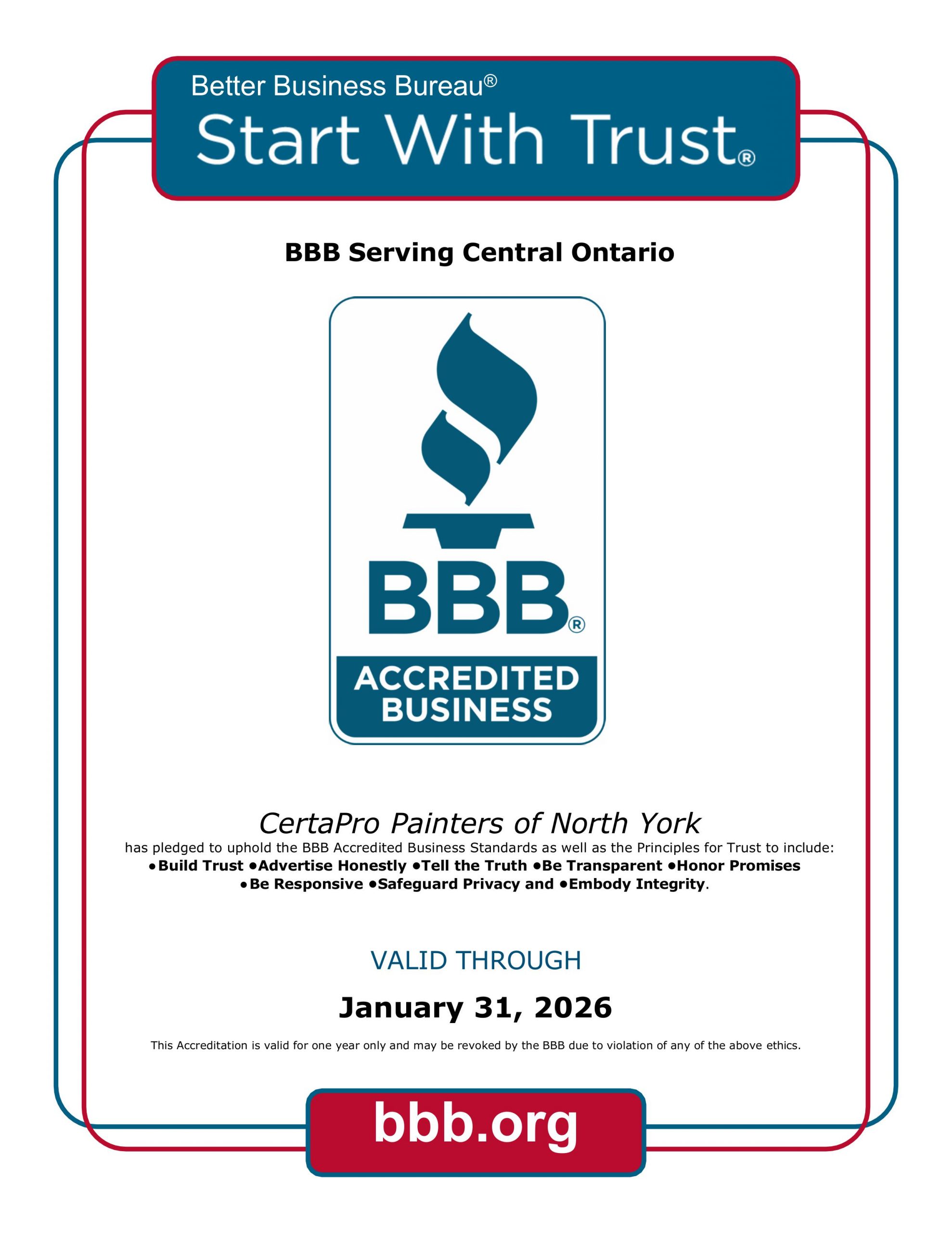 CertaPro Painters of North York | Now BBB Accredited!