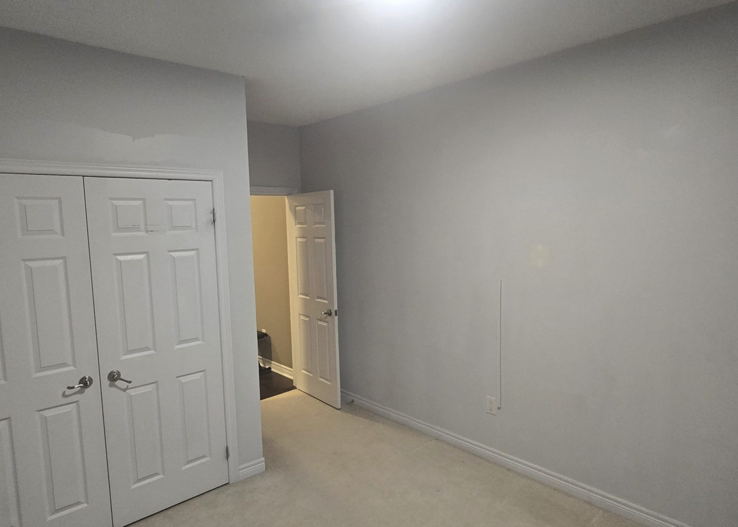 The project involved repainting wall surfaces only across multiple rooms, including bedrooms, hallway areas, the foyer, and main living spaces. Preparation included light sanding, minor drywall repairs, patching nail holes, and spot priming where needed.