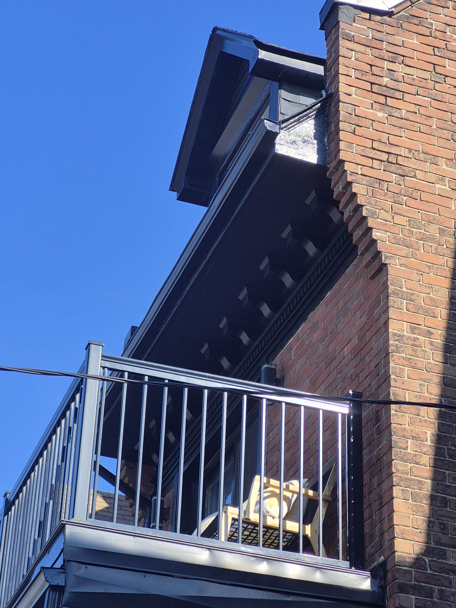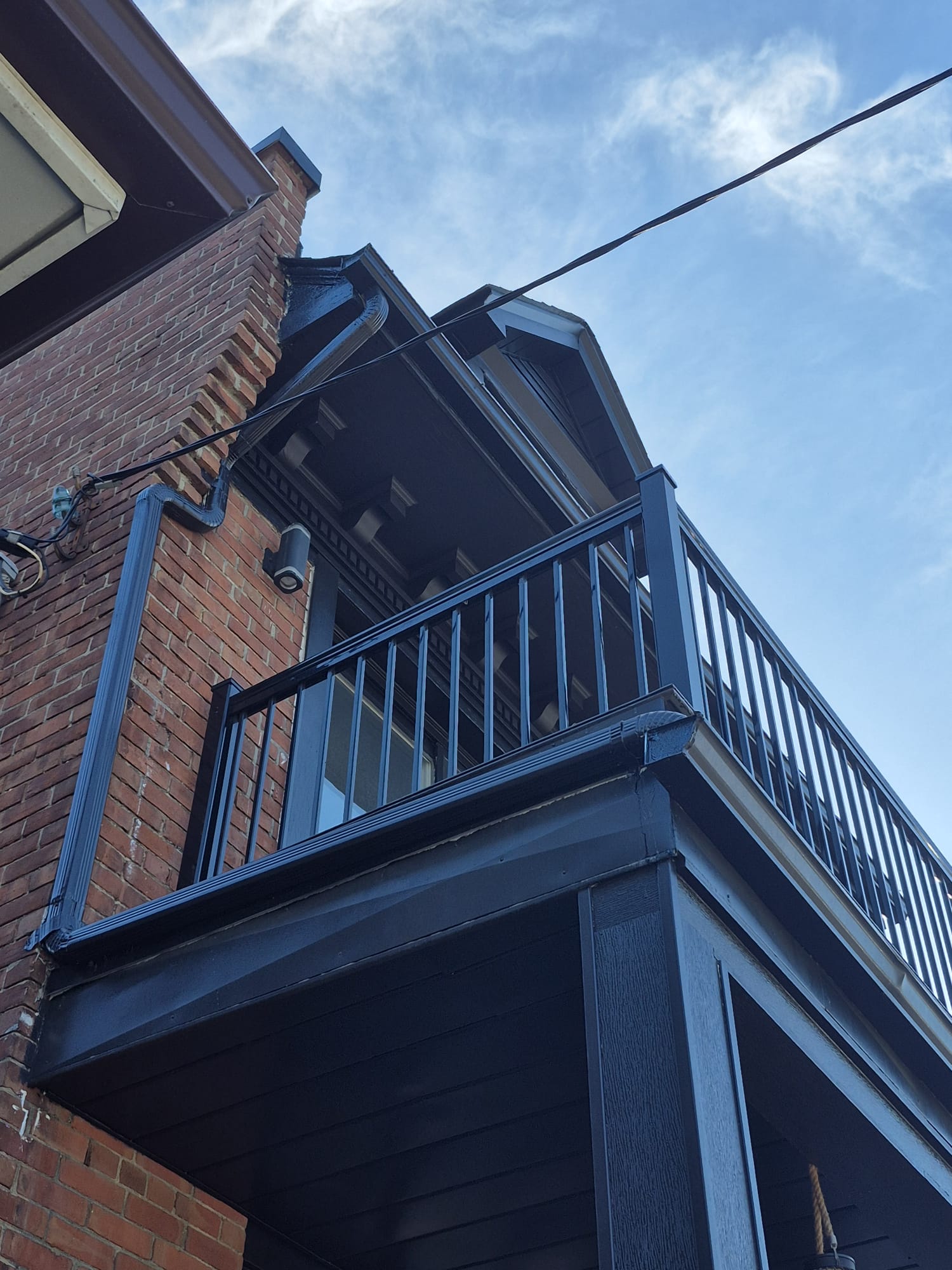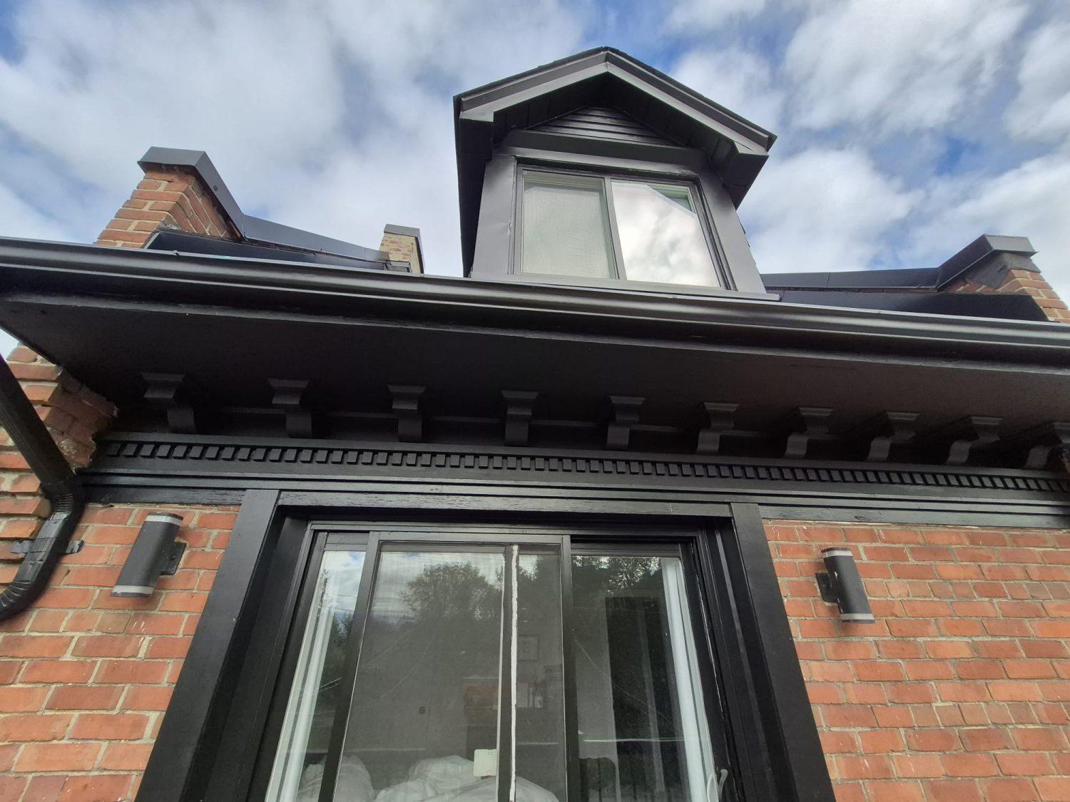 The project included soffits, fascia, window trims, dormer siding, and downspouts, all of which showed signs of aging, peeling paint, and weather exposure. Surfaces were carefully prepared through scraping, sanding, caulking, and spot priming to ensure proper adhesion and long-term performance.