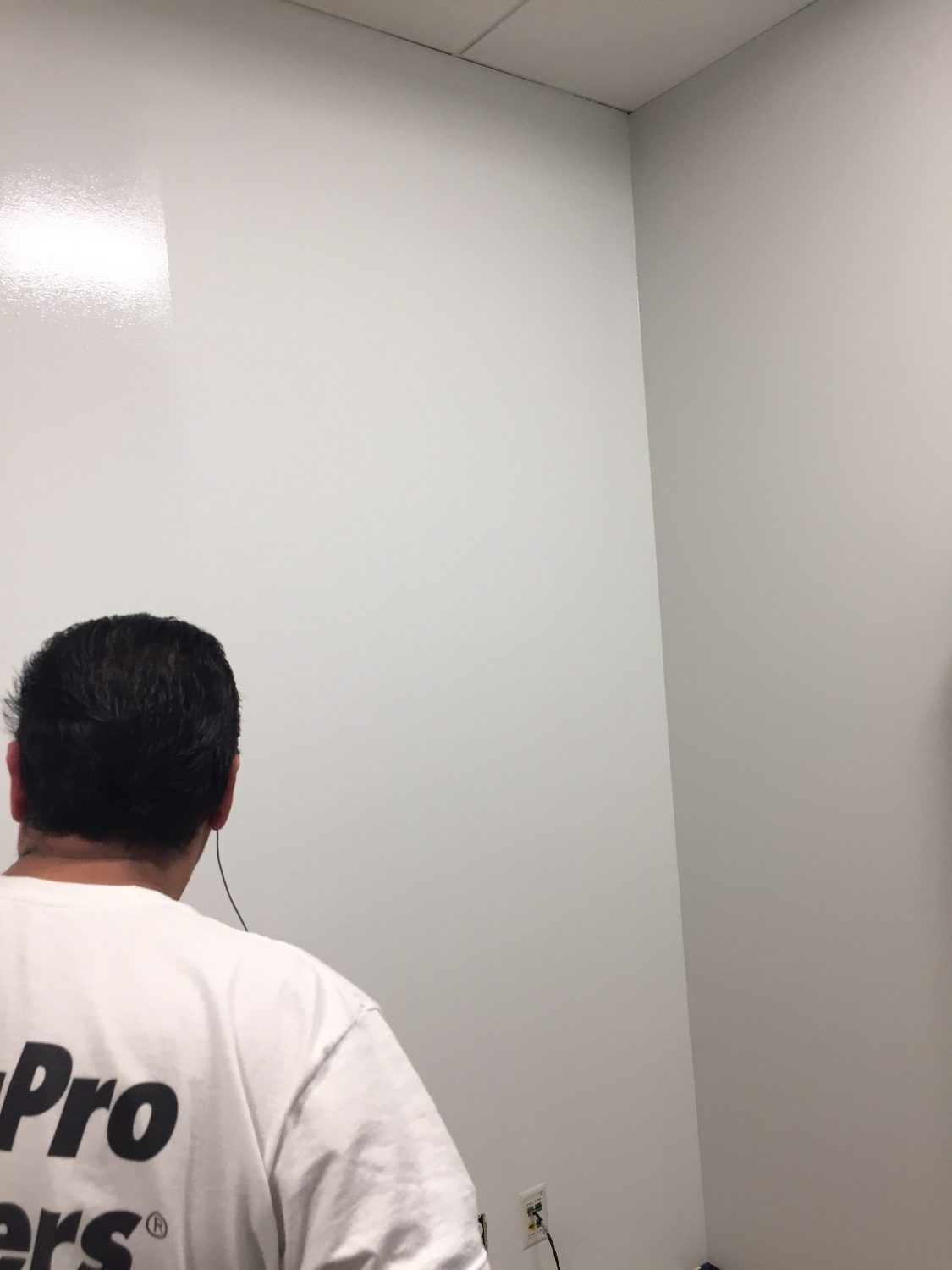 We first had to identify the correct white base coat background color and application of paint to allow for a proper dry time of one day, before returning the next day for the application of the Dry Erase, “Ready Paint” clear coat—which took an additional five days for proper curing until ready for use.