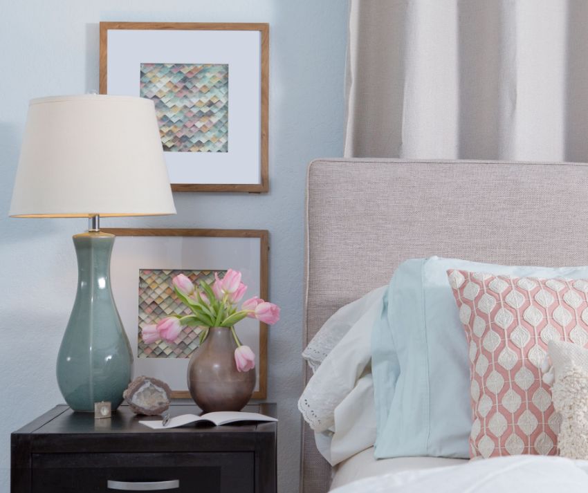 Think about your mood in your room. Many homeowners will agree they are looking for a refuge from the day and a calming effect in their room. A neutral palette gives you a clean and calming effect while offering an easy backdrop for pops of color in your linens or accessories. Changing out the extra colors is easy with this approach because nearly any will match with it.
