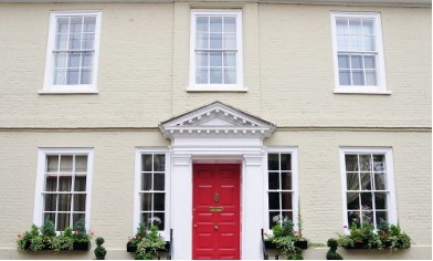 - Red: Many experts say that red is the color to paint your door if you want to express a happy, welcoming, fun energy to your home’s entrance. Red doors look best if surrounded by neutrals. Adding roses and other red flowers truly enhances the scenery.