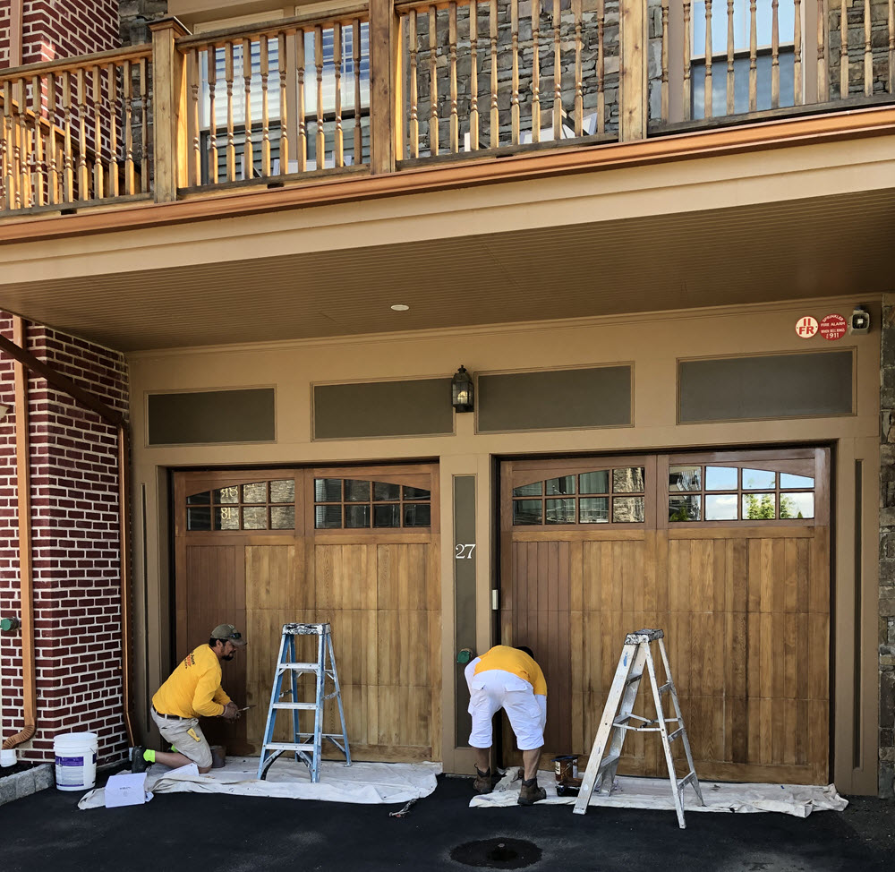 42 Garage Doors, Stripped and Stained with Benjamin Moore Arborcoat and Spar Varnish