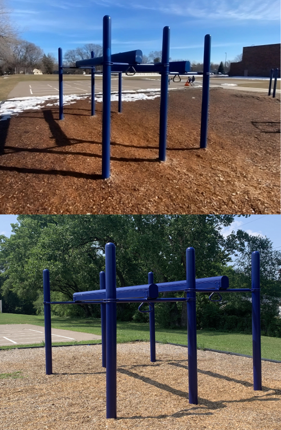 Originally, the monkey bars and walking area of the playground were pure gray from top to bottom. The only form of accenting was a tan dome-area nearby the slides. The other areas of the playground aside from the main structure were kept the same color, but when painting began, we added 3 colors to compliment one another across the structure. Black, Yellow, and Dark Blue are the trio of colors that come together to better help students identify where to step without falling. Together, the new colors and fresh coat of paint will help protect this playground from sun damage and keep the school looking beautiful for years to come!