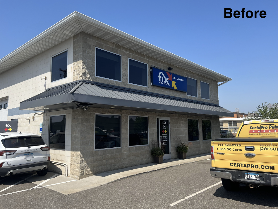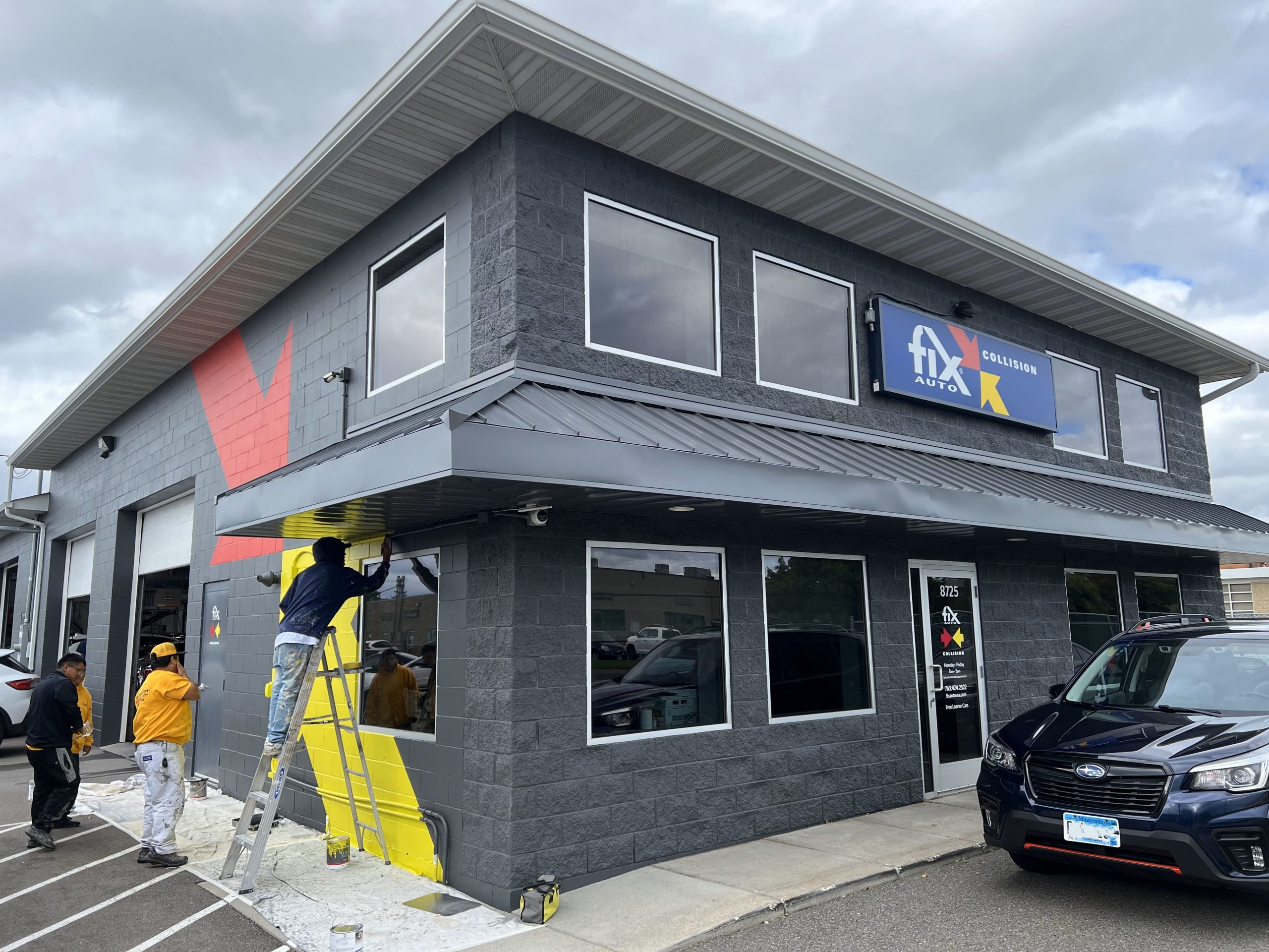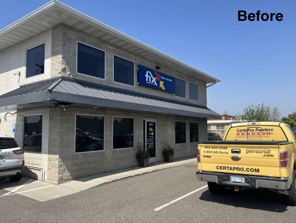 Auto Body Shop Exterior Painting including Logo Accent Graphic