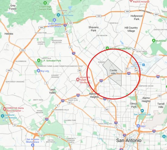 Castle Hills, Texas, is a unique “city within a city” located in Bexar County, completely surrounded by San Antonio. It is known for its community-focused atmosphere. Castle Hills is a central hub located inside Loop 410, offering quick access to the San Antonio International Airport and the South Texas Medical Center. The total area of the city spans approximately 2.5 square miles and has a population of nearly 4,000 residents. Despite its residential focus, Castle Hills is home to some of the area’s highest-rated independent restaurants and local businesses along NW Military Highway. The city is served by the North East Independent School District, including the highly regarded Castle Hills Elementary. This community maintains a distinct small-town feel with all the conveniences of the big city right next door.