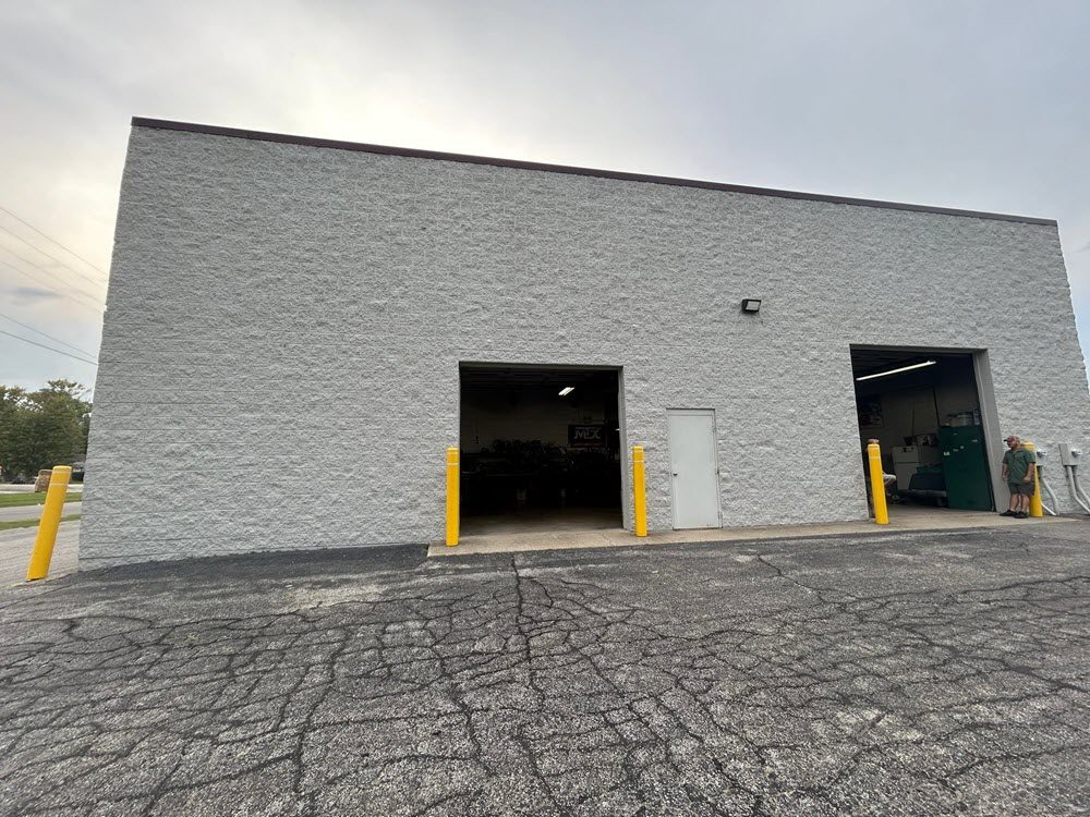 Work began by masking all doors and windows to prevent overspray. All exterior surfaces were power washed, and fresh caulk was applied to the CMU where needed. Spot priming was performed using Sherwin-Williams Loxon Masonry Primer for the CMU and Pro Industrial Pro-Cryl Primer for the roofing. Two coats of finish paint were applied to all areas.