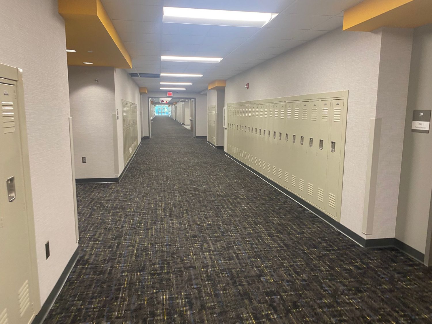 During execution, great care was taken to protect the newly remodeled areas. Heavy-duty floor coverings and plastic sheeting were used throughout the hallways and locker bays, and all walls and surrounding surfaces were masked to prevent overspray. Surface preparation included: