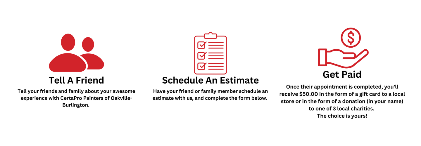 Have the painting experts at CertaPro Painters® of Oakville-Burlington completed a service for you that you can’t stop raving about? Refer a friend today and receive a $50.00 gift card once they book their job.