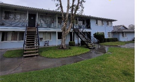 This apartment complex now shines with a beautiful light blue and crisp white trim. A perfect update for a welcoming community