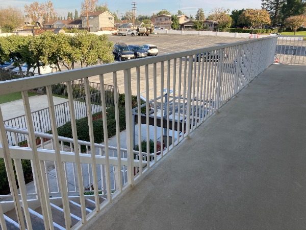 Wrought iron surfaces, including those surrounding childcare play areas, were also prepared and painted to restore their appearance and durability. A new stair railing was installed as part of the project, further enhancing both safety and functionality.