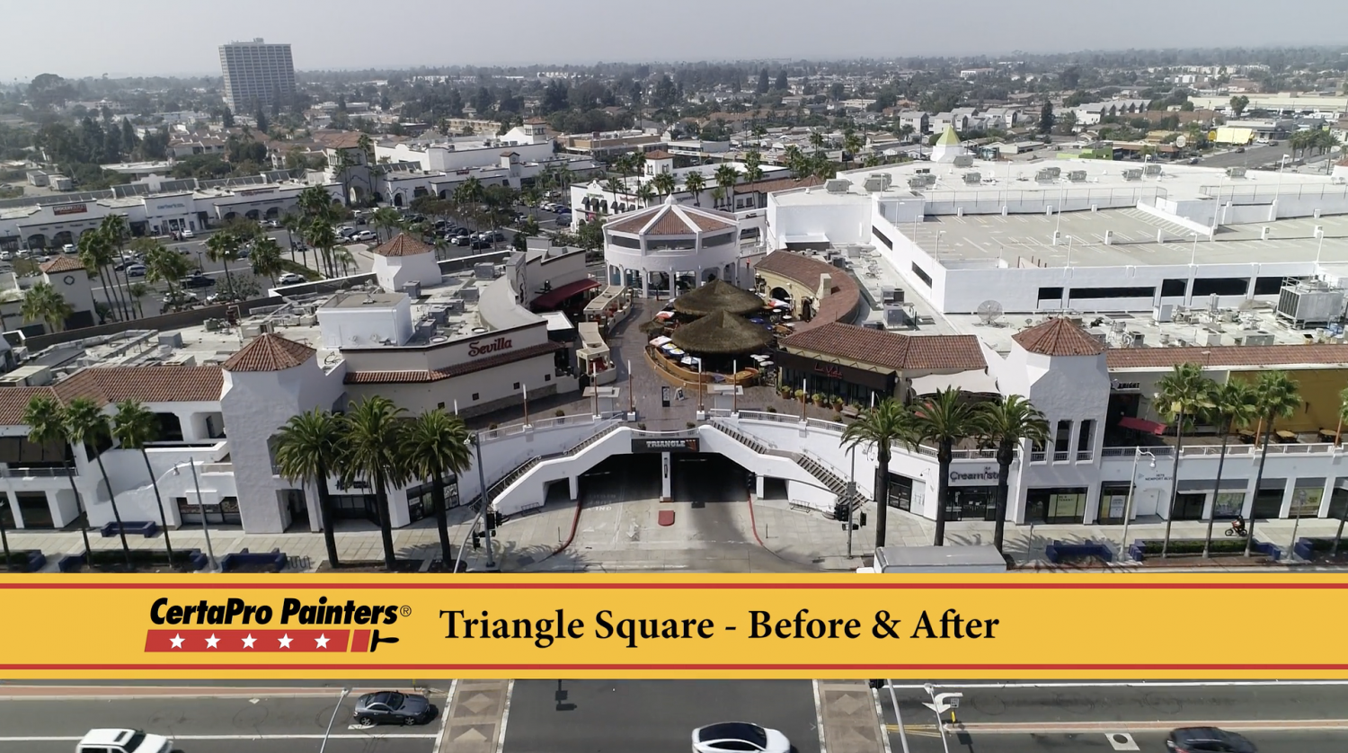 At almost 200,000 square feet, “The Triangle” in downtown Costa Mesa is the largest entertainment, retail, and dining attraction in the city. Opened in 1992, and expanded over time, the landmark building recently received a fresh new exterior look compliments of CertaPro of Orange County.