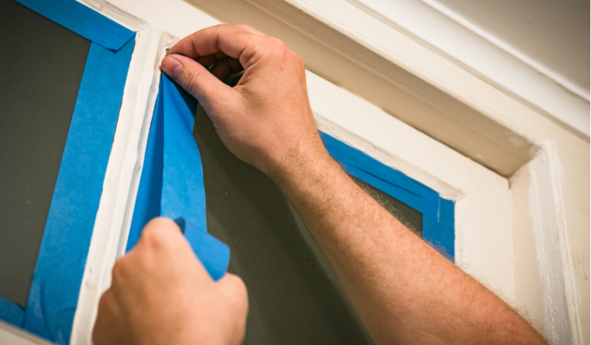 If you are dealing with hardware or trim that is too hard to remove, take the time to tape it off. Masking tape could save money but not heartache. Spring for painter’s tape which is engineered to avoid bleeding through. Use a putty knife to push the edges in hard. A good seal is the key to painter’s tape being your friend, instead of foe.