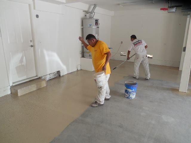 Here one of our team members is applying an epoxy coat to a garage floor.