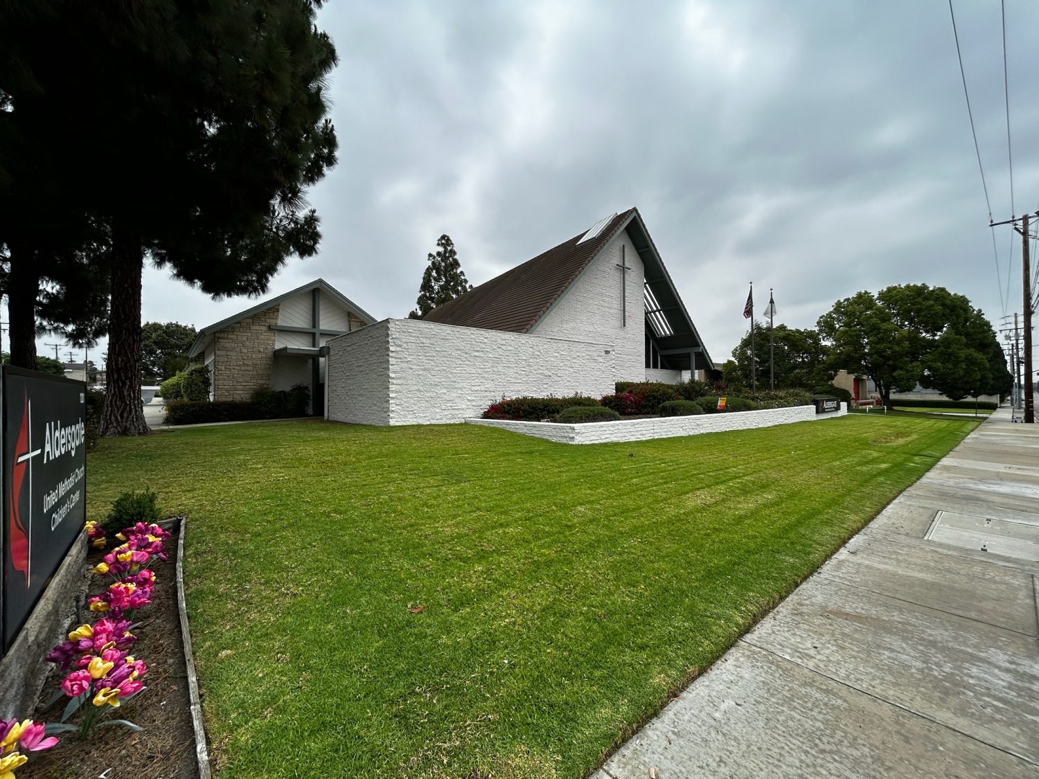 The commercial painting experts at CertaPro Painters® of Orange County completed an exterior repaint of Aldersgate Church in Tustin, CA. The body of the church was painted to match the current white, with PPG paint in Grey Heron used for the trim, and Sherwin Williams in Tricorn Black for signage.
