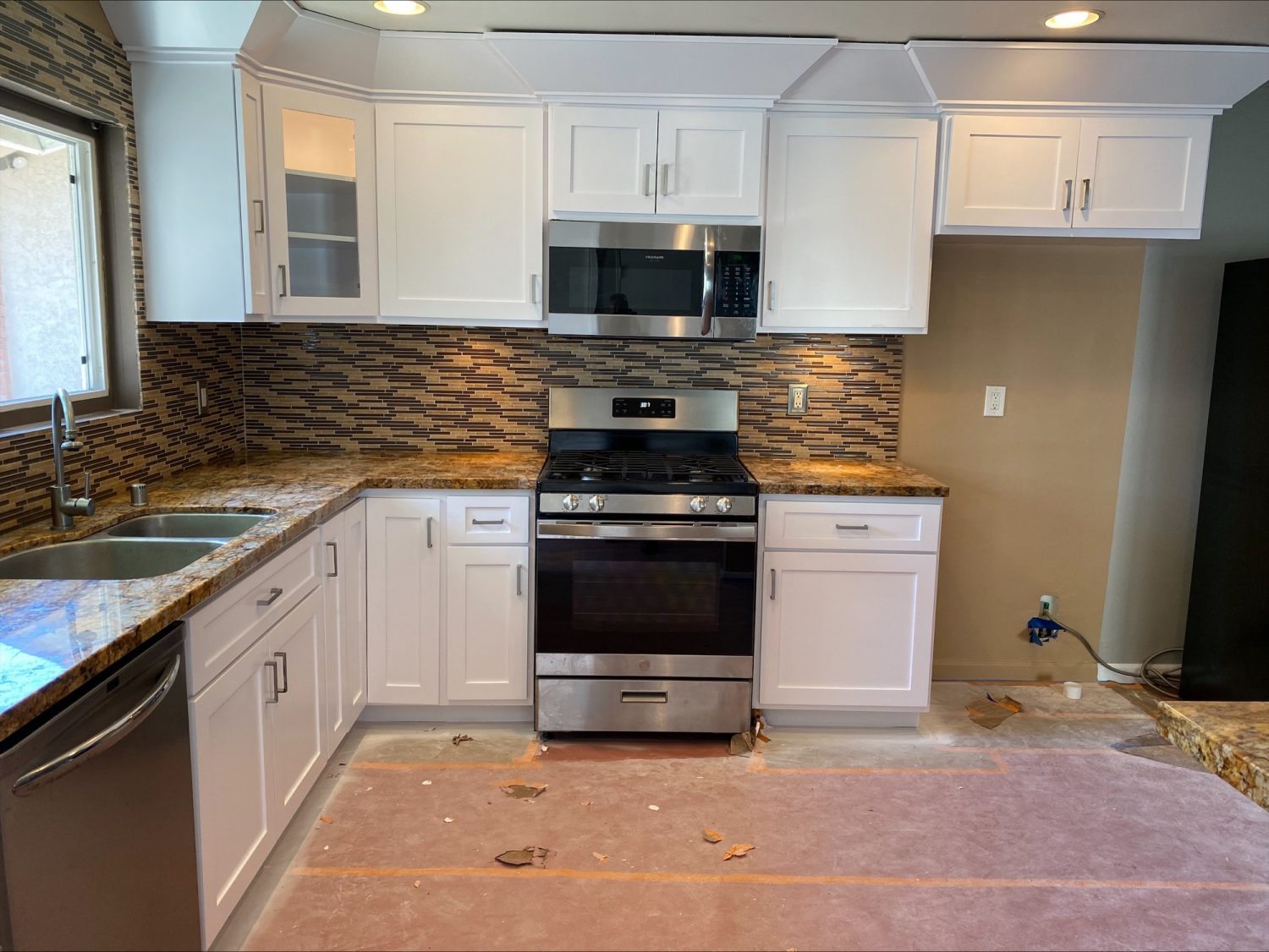 The completed kitchen after cabinets have been prepped and painted. Click on any image to enlarge.