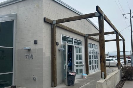 Situated on Redwood Road in Salt Lake City, this retail outlet is currently functioning as a doughnut shop. Its recent upgrade project included the painting of four distinct surfaces. The structural body combined both masonry and corrugated metal, while metal was the choice for trim and downspouts. Aluminum entry doors welcome customers, and a wooden pergola adds a charm to the overall design.