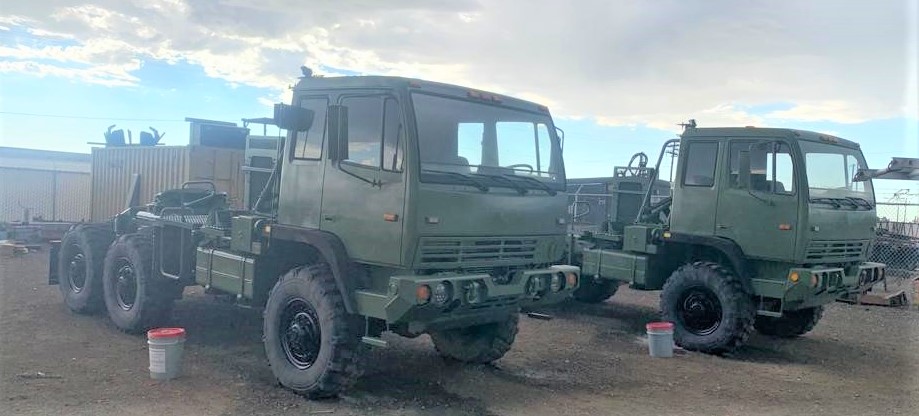 Another unique project on the books. We repainted their camouflage trucks with a solid military green.