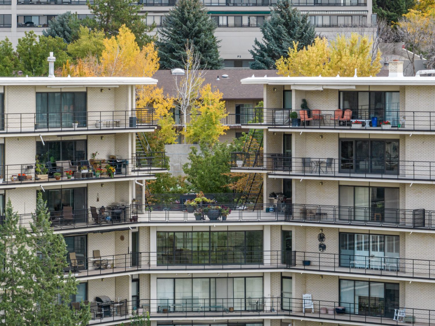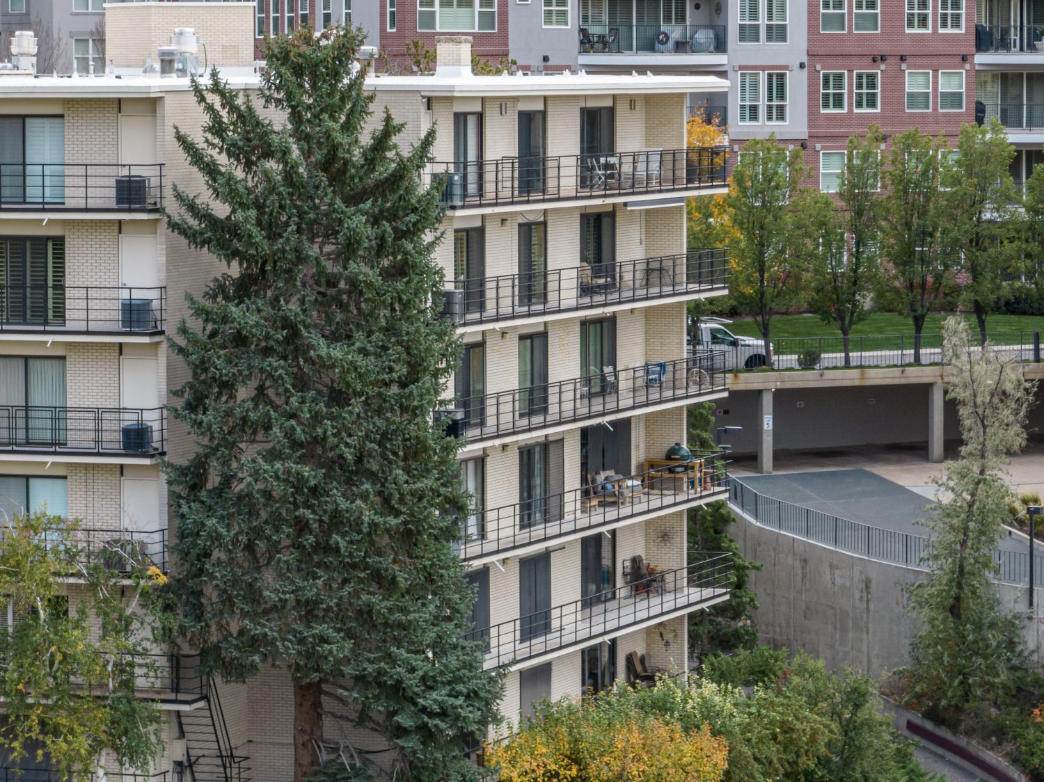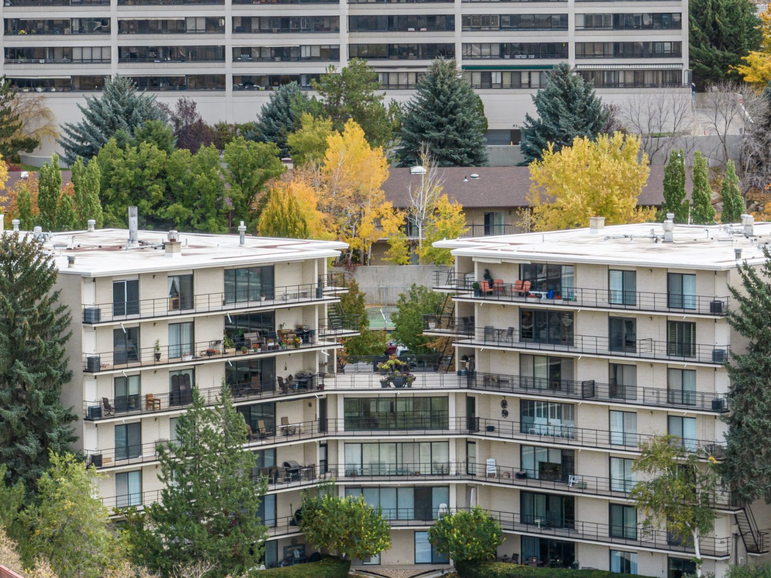 Oakcrest Gardens Condominiums located in the East Bench neighborhood of Salt Lake City had us paint all the exterior railings and staircases a dark color to contrast with the light colored body of the building. This project is on a steep hillside.