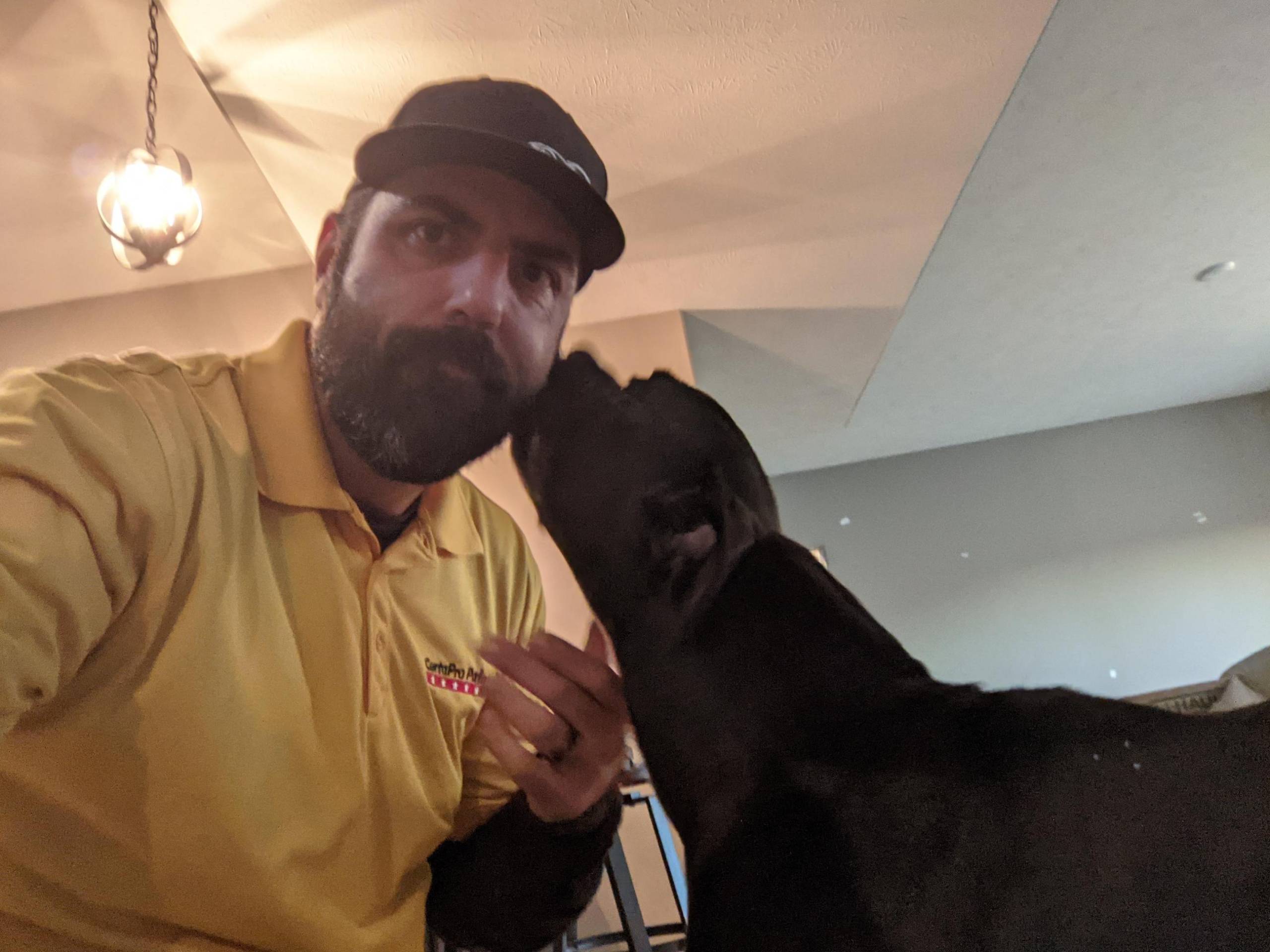 Do you have a dog at home? Our residential production associate Kip LOVES dogs—and taking selfies with them. Don’t believe us? Take a look at the photos below! When Kip’s on the job he aims to ensure that our customers are as happy with the progress of their project as he is taking a selfie with their pups! If you’re a dog owner and happen to need your home repainted, call 402-493-5358 today for your free in-home estimate.