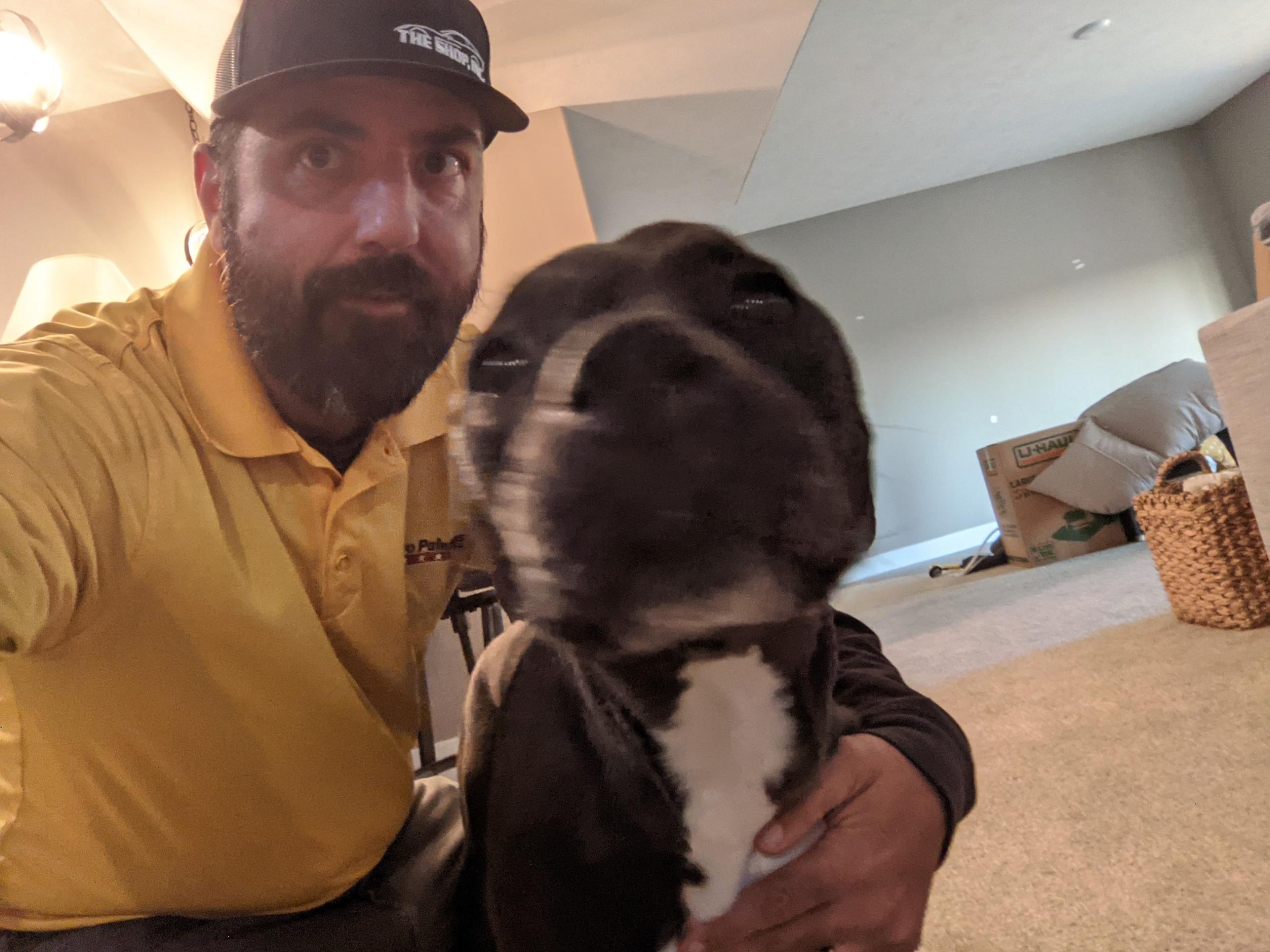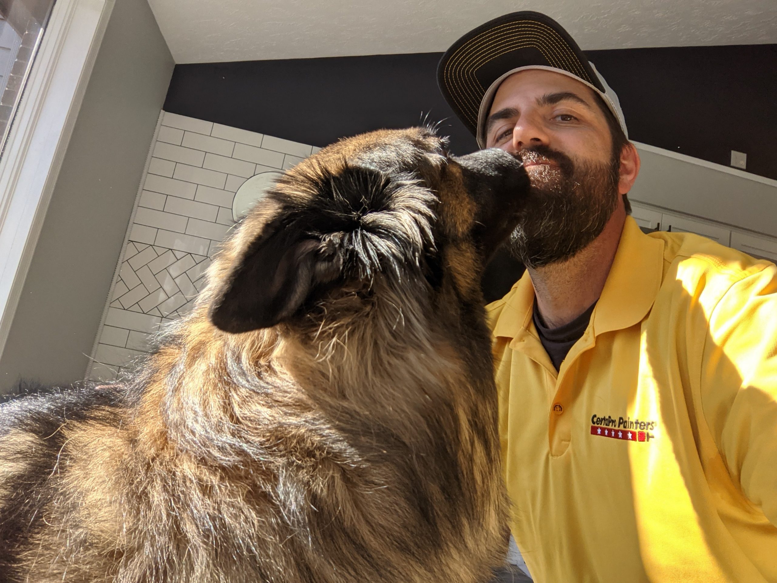 Do you have a dog at home? Our residential production associate Kip LOVES dogs—and taking selfies with them. Don’t believe us? Take a look at the photos below! When Kip’s on the job he aims to ensure that our customers are as happy with the progress of their project as he is taking a selfie with their pups! If you’re a dog owner and happen to need your home repainted, call 402-493-5358 today for your free in-home estimate.