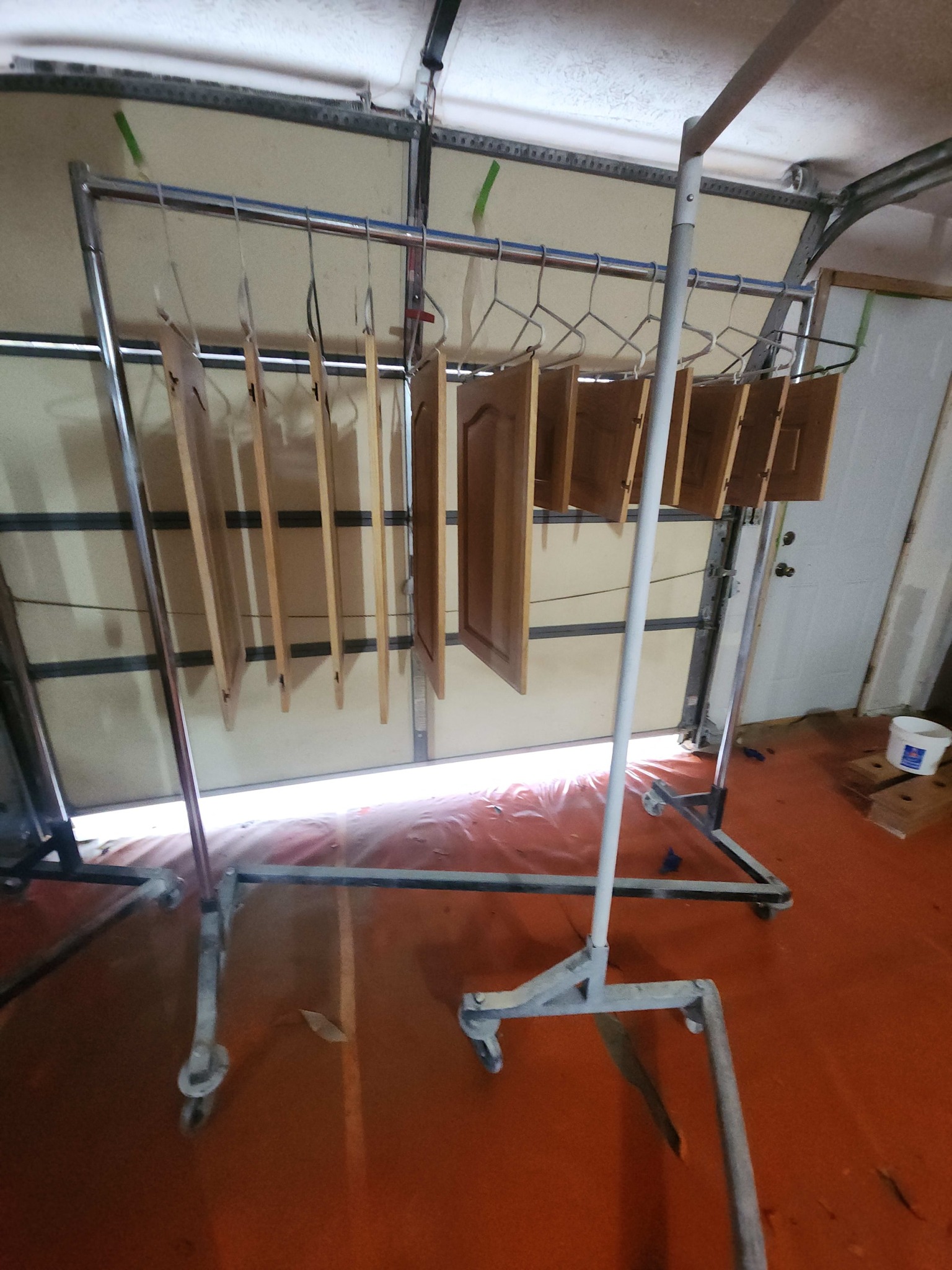 Cabinets are scuff-sanded between coats to ensure proper adhesion