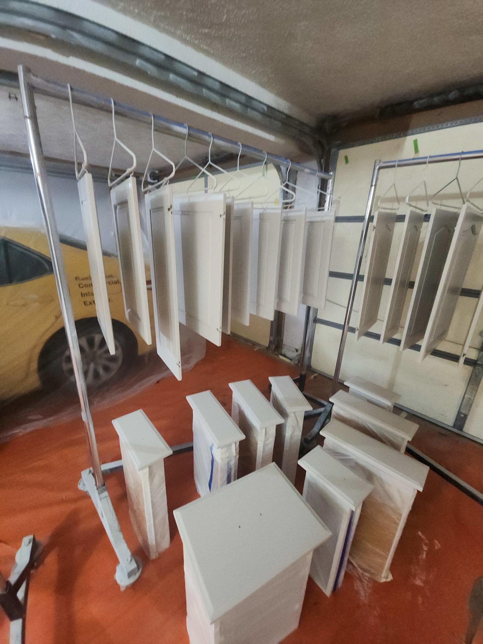 A professional spray booth is set up in your garage (usually requiring two bays)