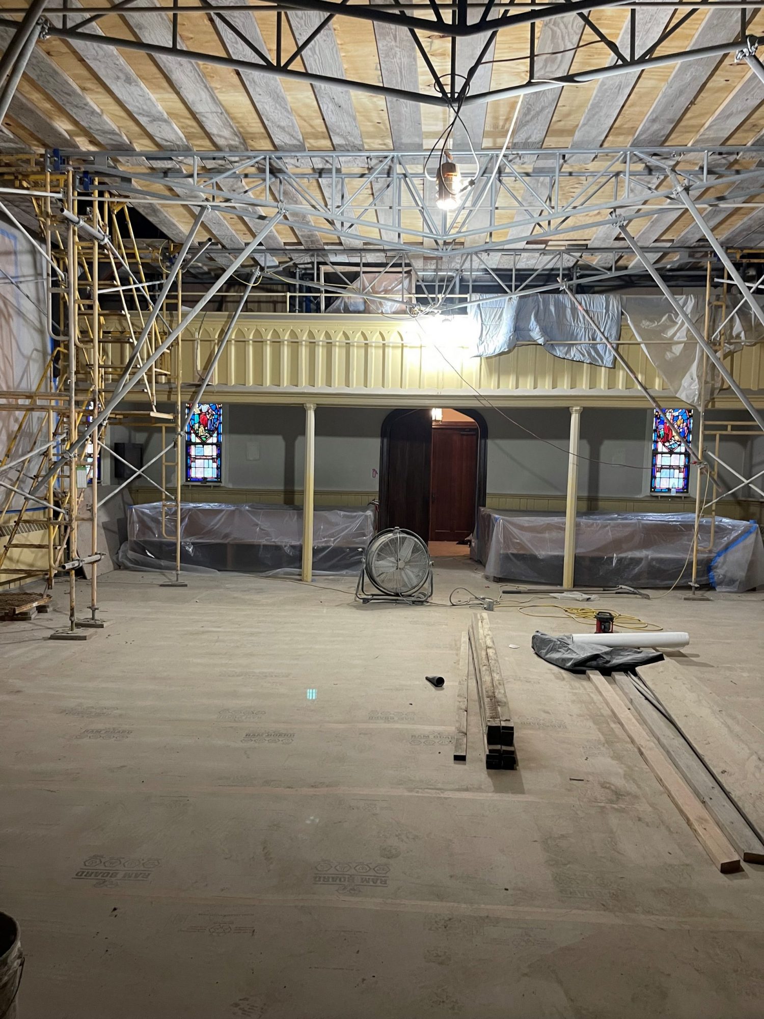 By the 2000s, the plaster wall and ceiling surfaces of the church had started to badly deteriorate. The church came to us in February 2024 looking to have the plaster wall and ceiling surfaces restored, which would require removing all of the old plaster and lathe to replace with sheet rock.