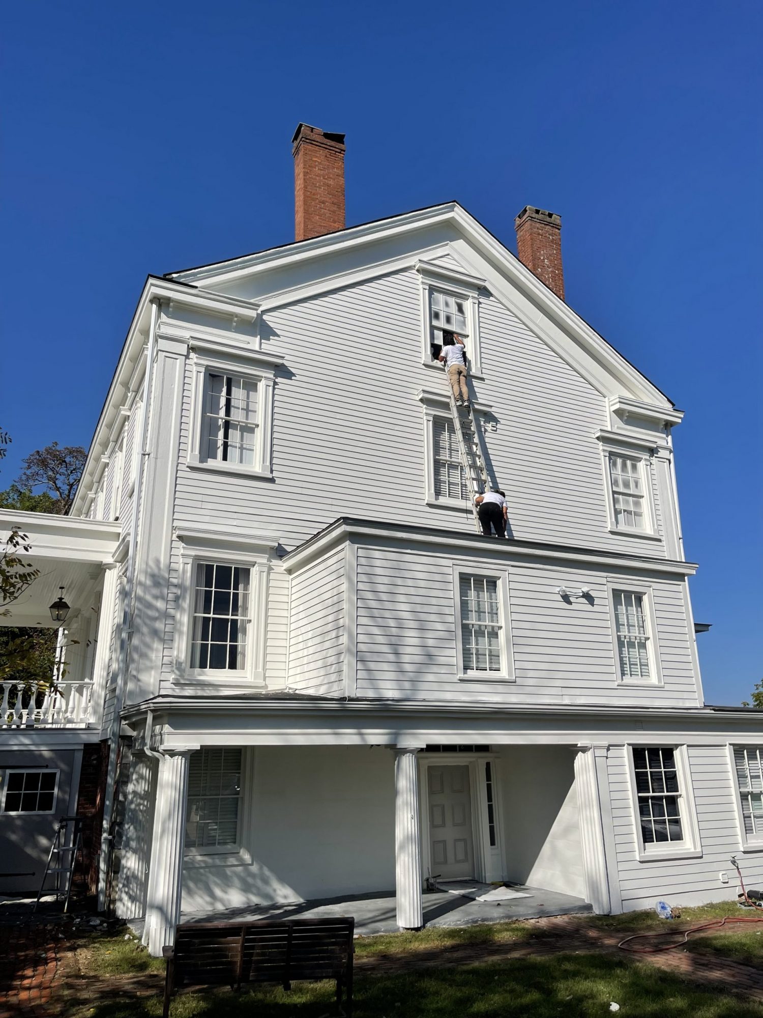 Around September 2022, the owners of this 1850 Greek Revival mansion reached out to us to update its exterior color. However, we discovered other neglected areas that needed repair.